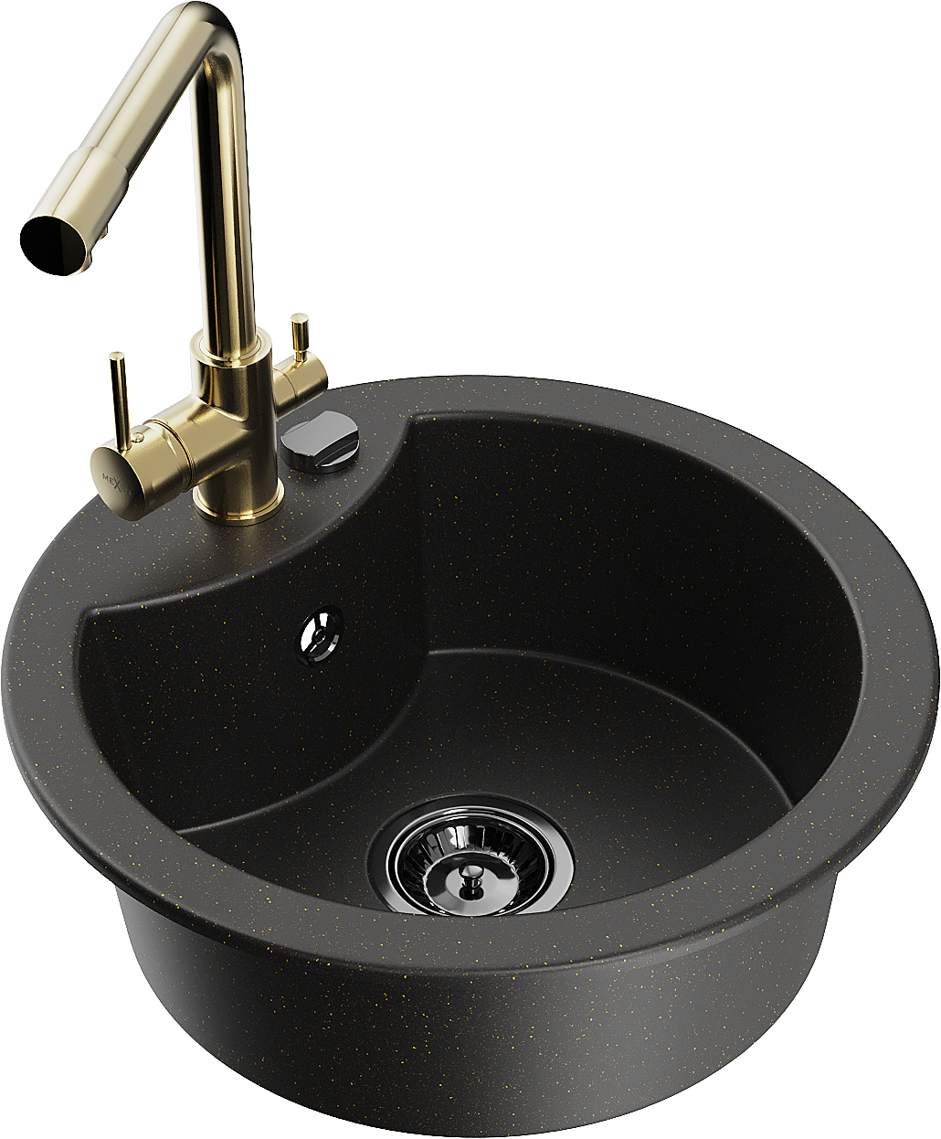 Mexen Diego évier en granit à 1 bac avec robinet de cuisine Duero, noir/doré métallisé - 6512-75-671600-50-B