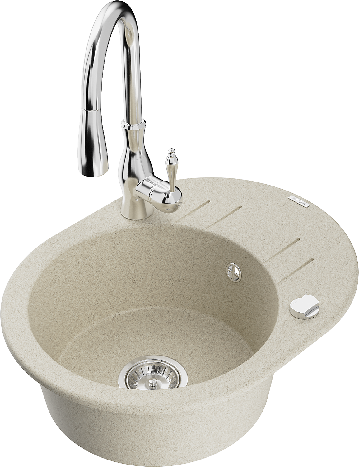 Mexen Kevin évier en granit 1 bac avec égouttoir et robinet de cuisine Savita, beige - 6517-69-672601-00