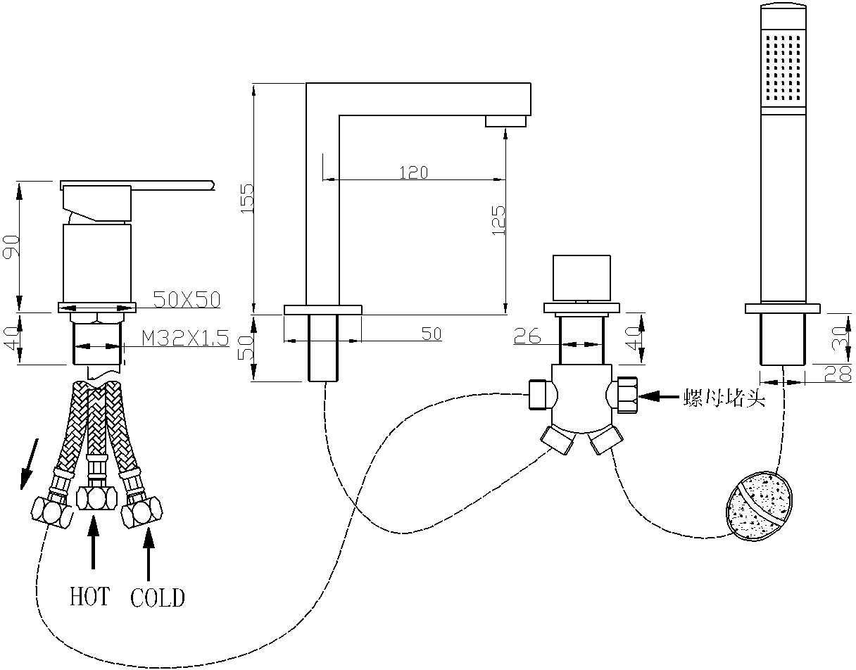 Mexen Cube robinet de baignoire, chrome - 72932-00