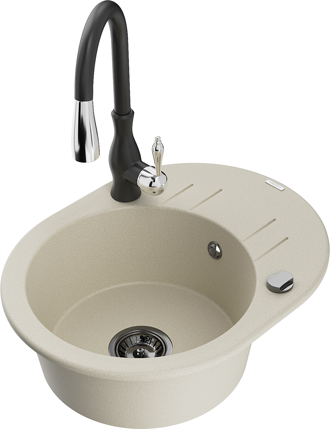Mexen Kevin évier en granit 1 bac avec égouttoir et robinet de cuisine Savita, beige - 6517-69-672601-70