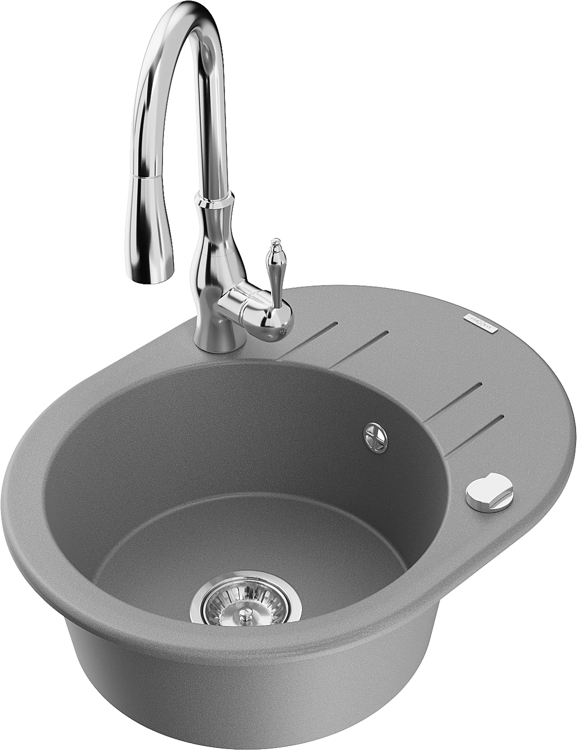 Mexen Kevin évier en granit 1 bac avec égouttoir et robinet de cuisine Savita, gris - 6517-71-672601-00