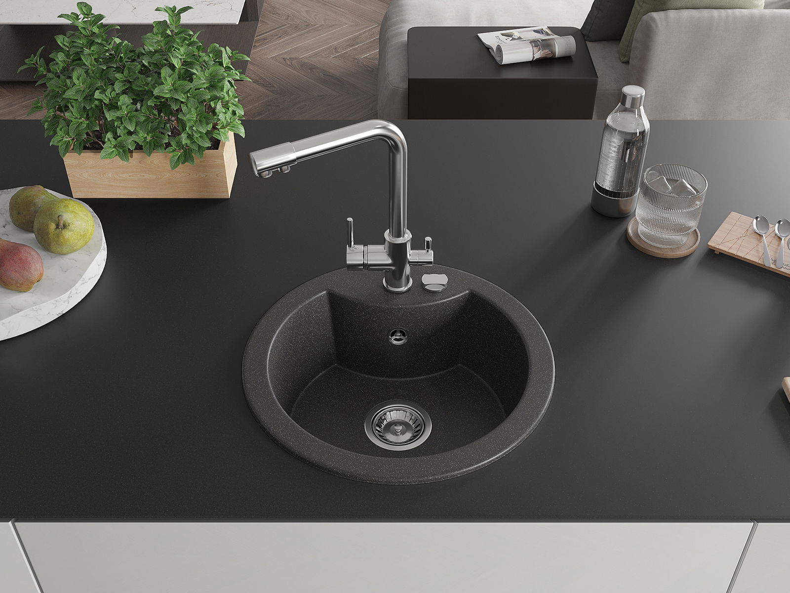 L'évier a été fabriqué en granit de haute qualité. Il constitue un complément élégant et surtout pratique à toute cuisine, quel que soit son style. La haute qualité et la durabilité du granit garantissent une utilisation pendant de nombreuses années.