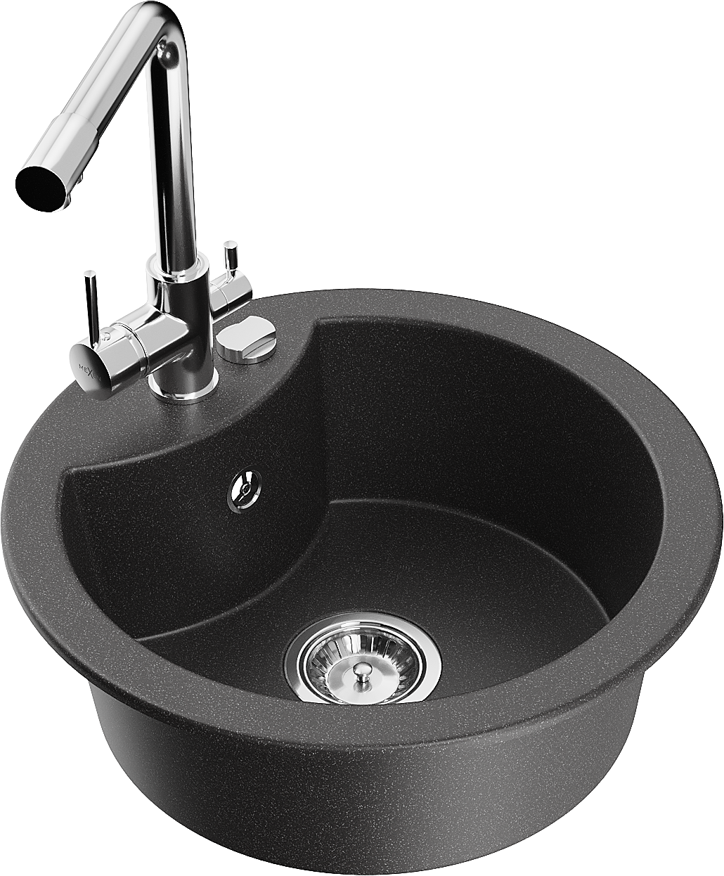 Mexen Diego évier en granit à 1 bac avec robinet de cuisine Duero, noir moucheté - 6512-76-671600-00