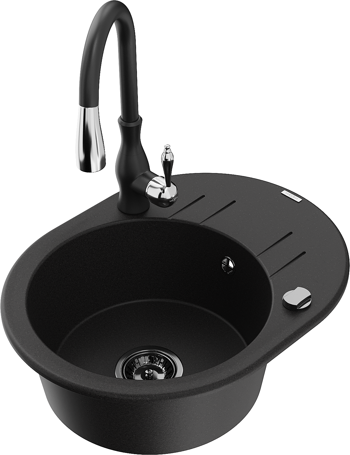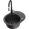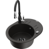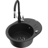 Mexen Kevin évier en granit 1 bac avec égouttoir et robinet de cuisine Savita, noir - 6517-77-672601-70-B