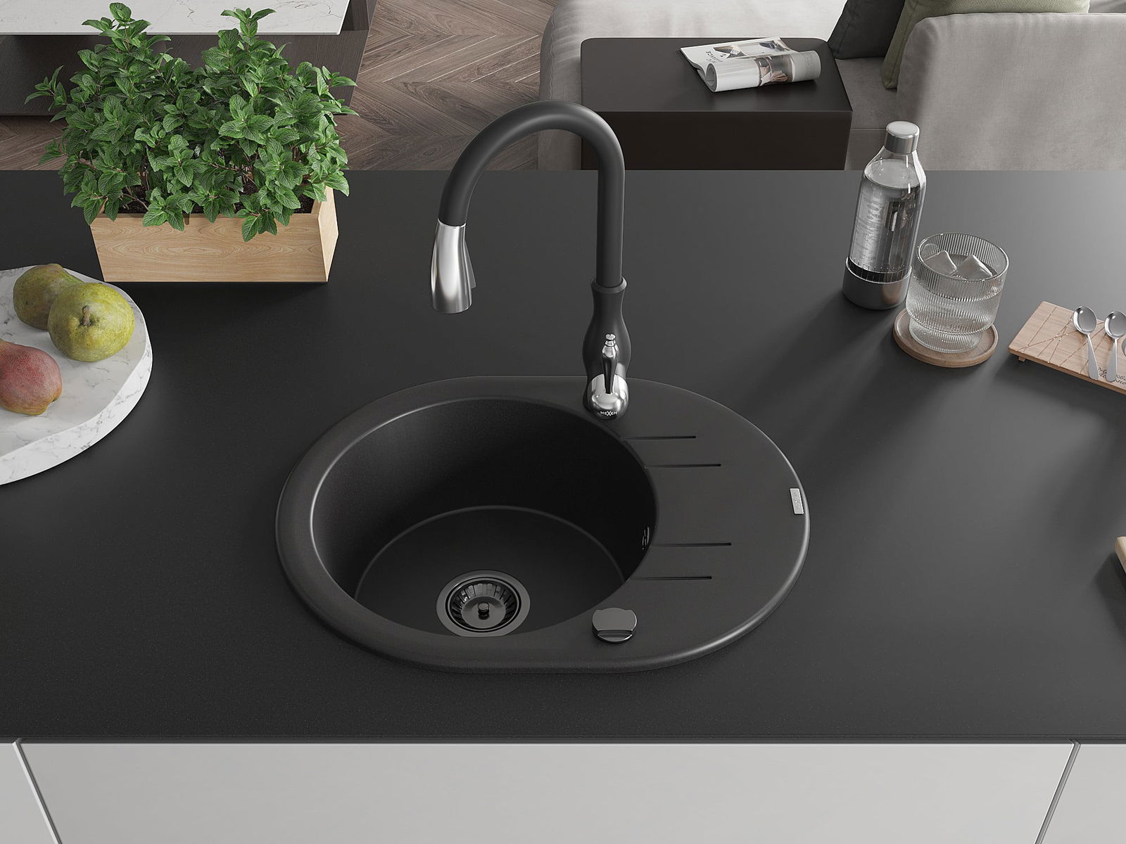 L'évier a été fabriqué en granit de haute qualité. Il constitue un complément élégant et surtout pratique à toute cuisine, quel que soit son style. La haute qualité et la durabilité du granit garantissent une utilisation pendant de nombreuses années.