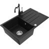Mexen Bruno évier en granit 1 bac avec égouttoir et robinet de cuisine Carla, gris - 6513-71-670700-71