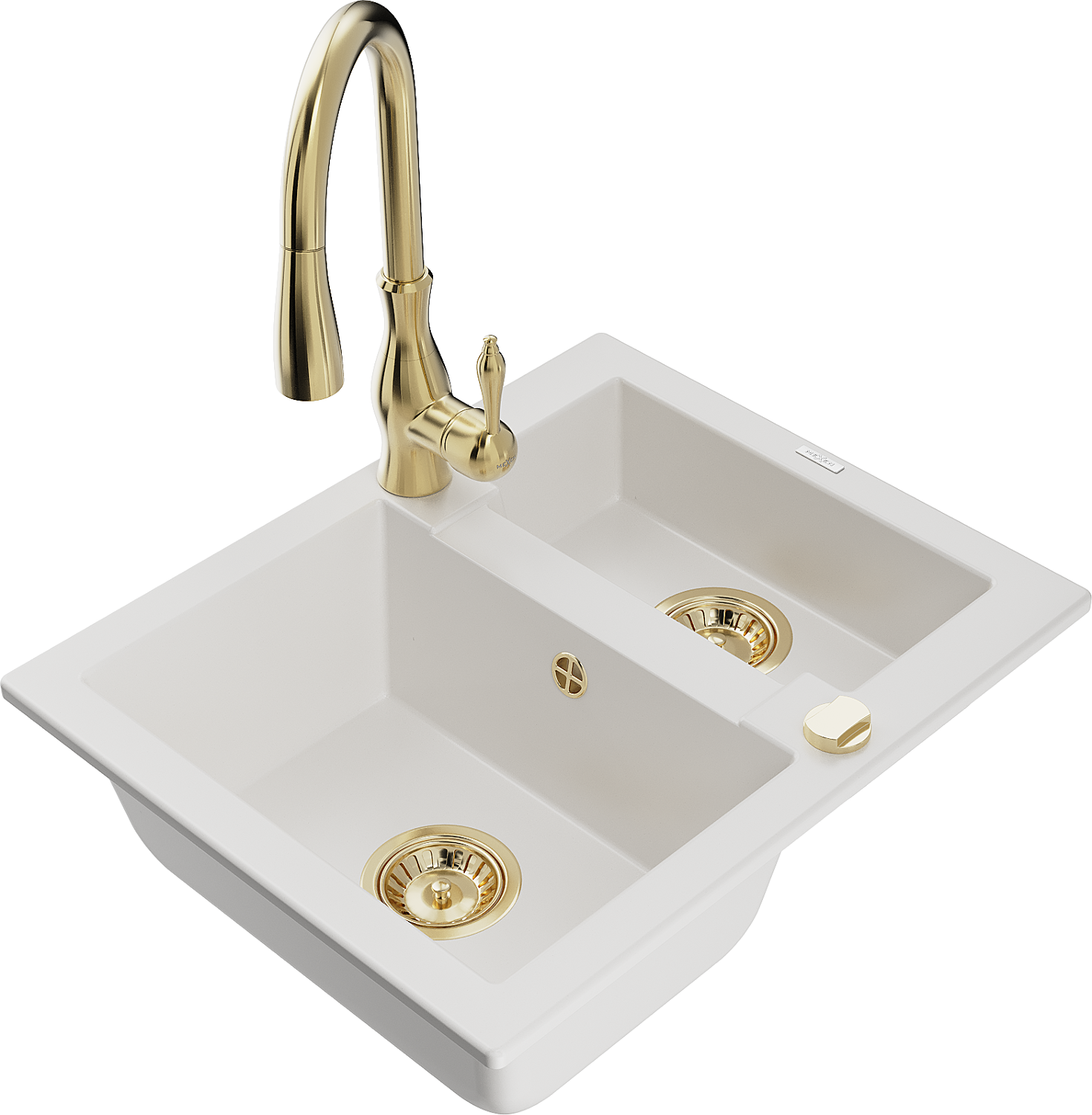 Mexen Carlos évier en granit 1,5 bac avec robinet de cuisine Savita, blanc - 6518-20-672601-50