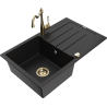Mexen Bruno évier en granit 1 bac avec égouttoir et robinet de cuisine Carla, noir moucheté - 6513-76-670700-50