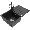 Mexen Bruno évier en granit 1 bac avec égouttoir et robinet de cuisine Carla, noir moucheté - 6513-76-670700-70