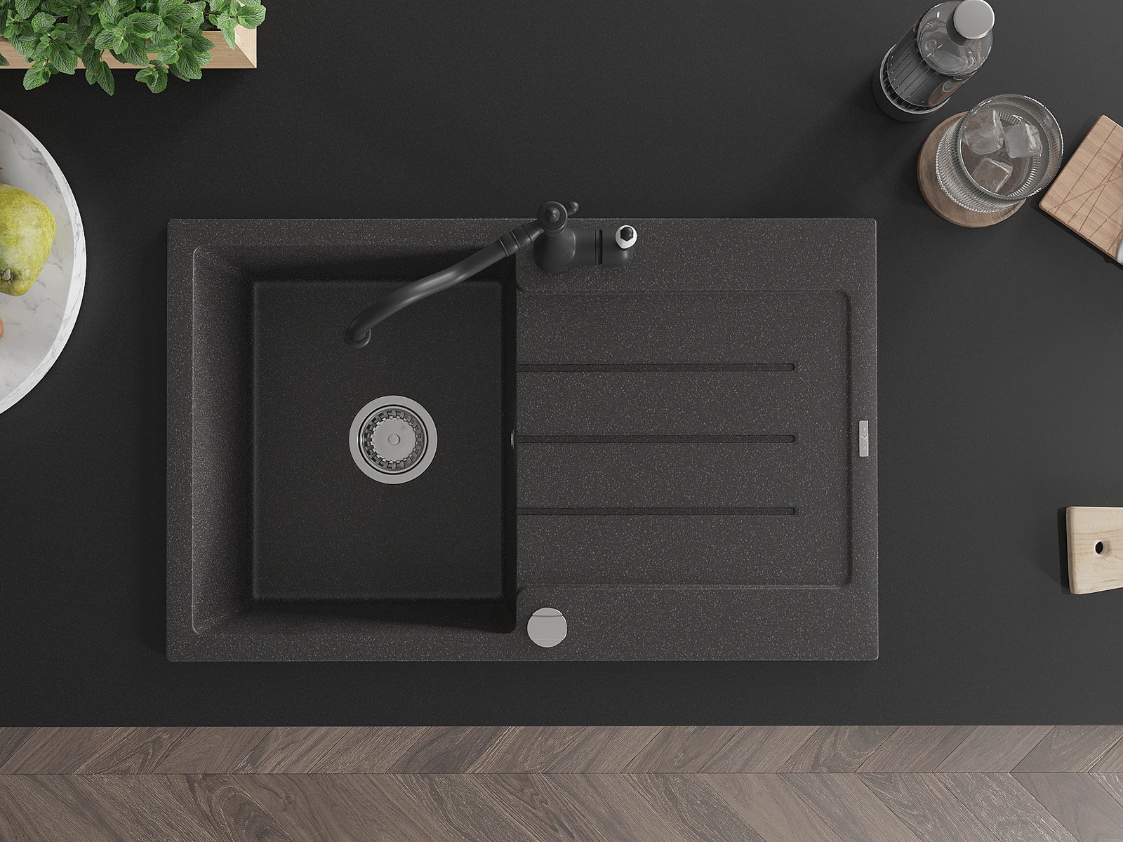 La surface de l'évier est très bien durcie, elle se distingue par une résistance exceptionnelle aux dommages mécaniques et aux rayures. Le matériau durable de fabrication permet de profiter de l'apparence de l'évier pendant de nombreuses années d'utilisation.