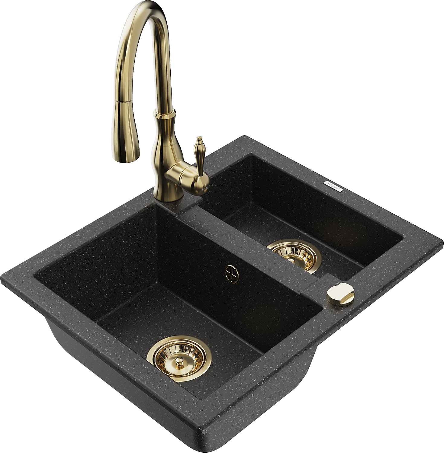 Mexen Carlos évier en granit 1,5-bac avec robinet de cuisine Savita, noir/métallisé argent - 6518-73-672601-50