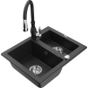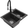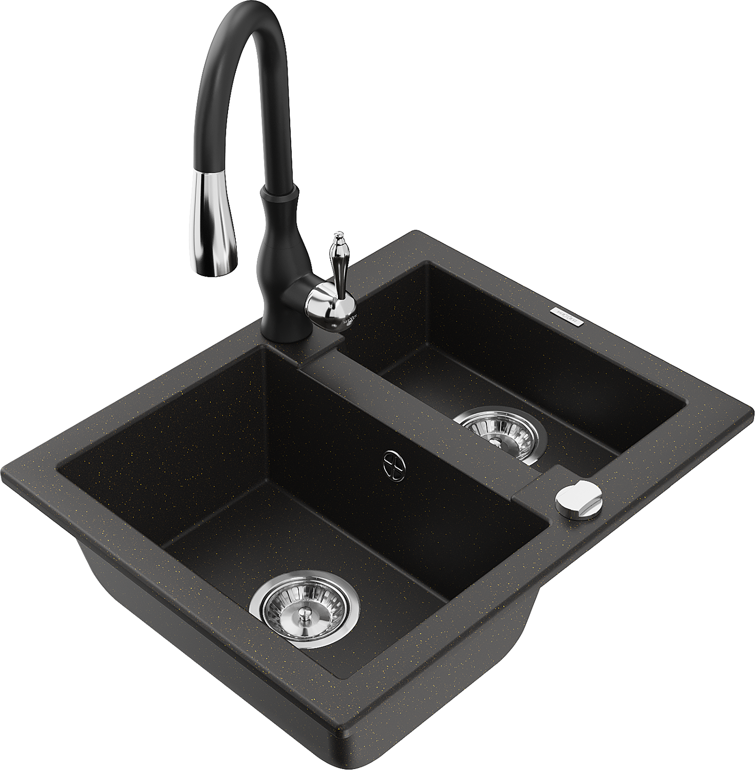 Mexen Carlos évier en granit 1,5 bac avec mitigeur de cuisine Savita, noir/doré métallique - 6518-75-672601-70