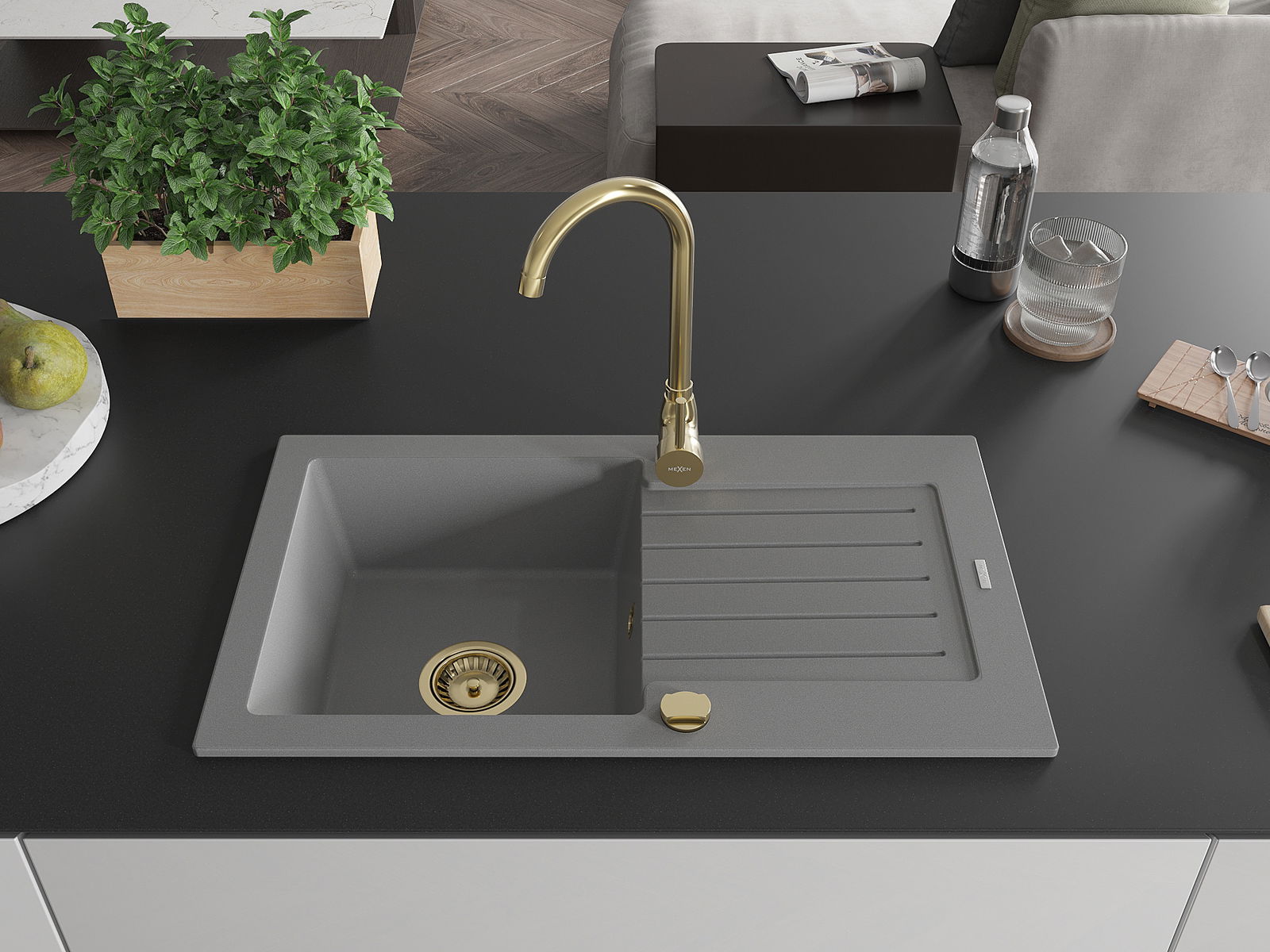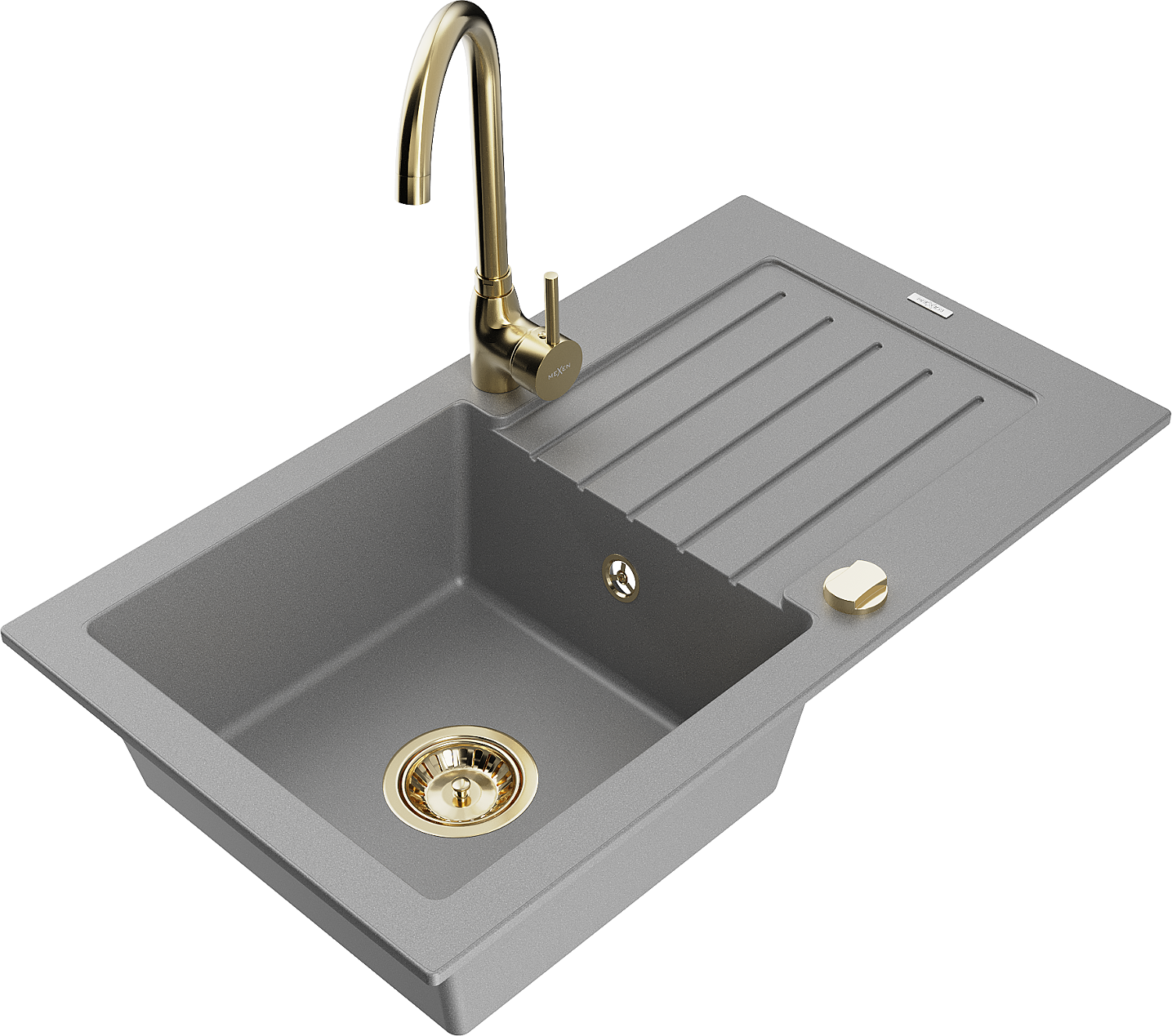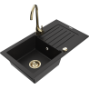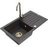Mexen Pablo évier en granit 1 bac avec égouttoir et robinet de cuisine Telma, gris - 6510-71-670200-50