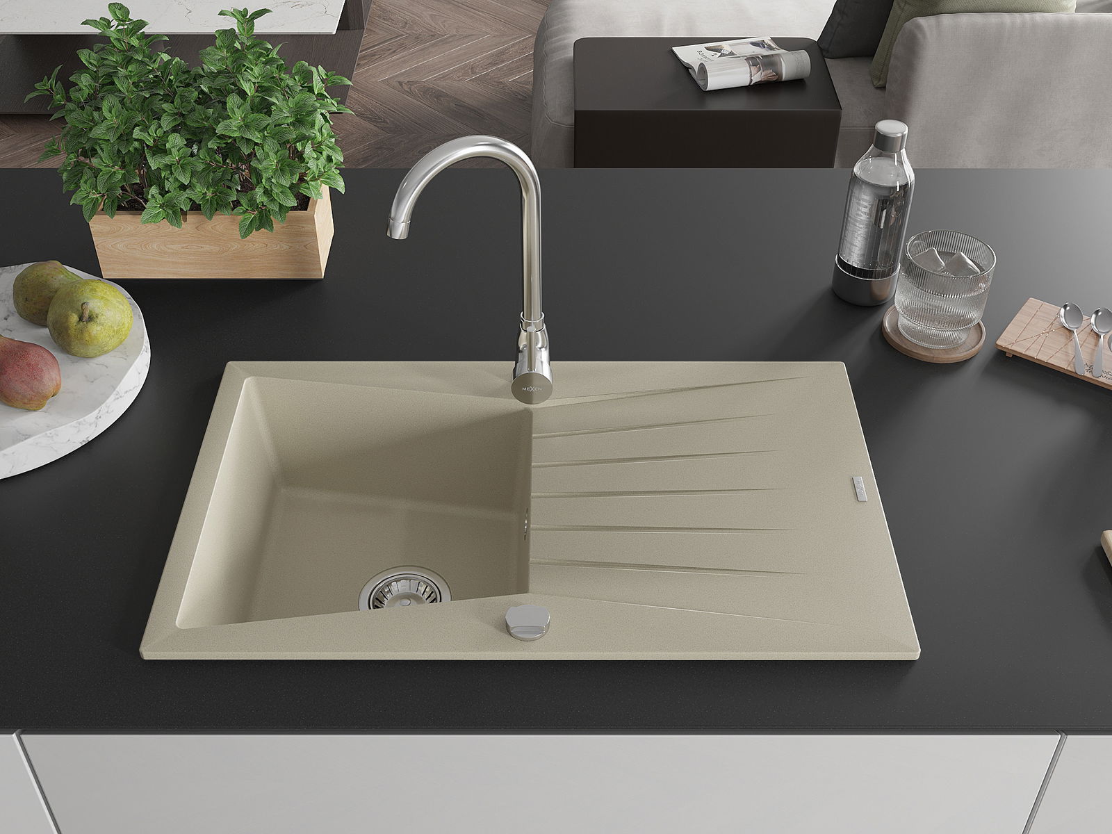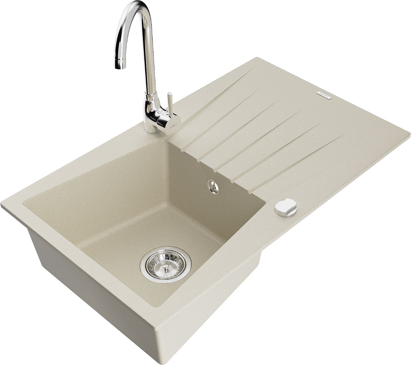 Mexen Cesar évier en granit 1 bac avec égouttoir et robinet de cuisine Telma, beige - 6514-69-670200-00