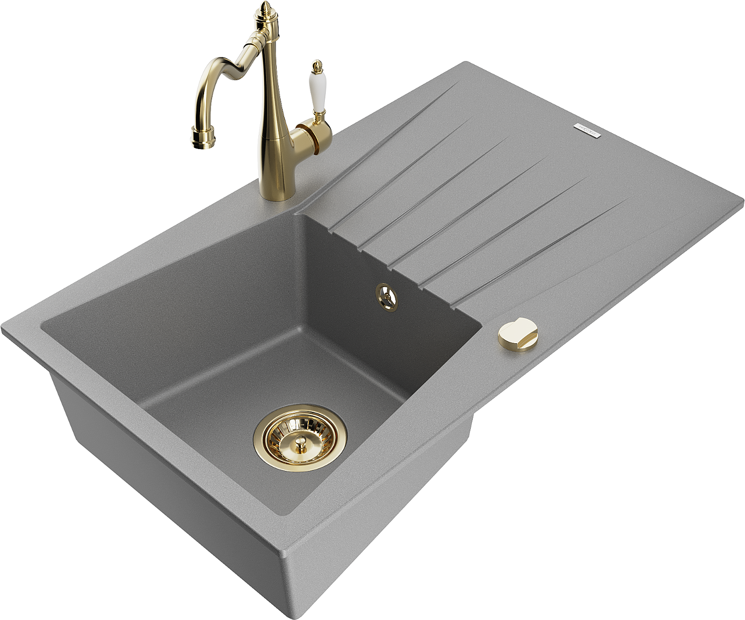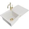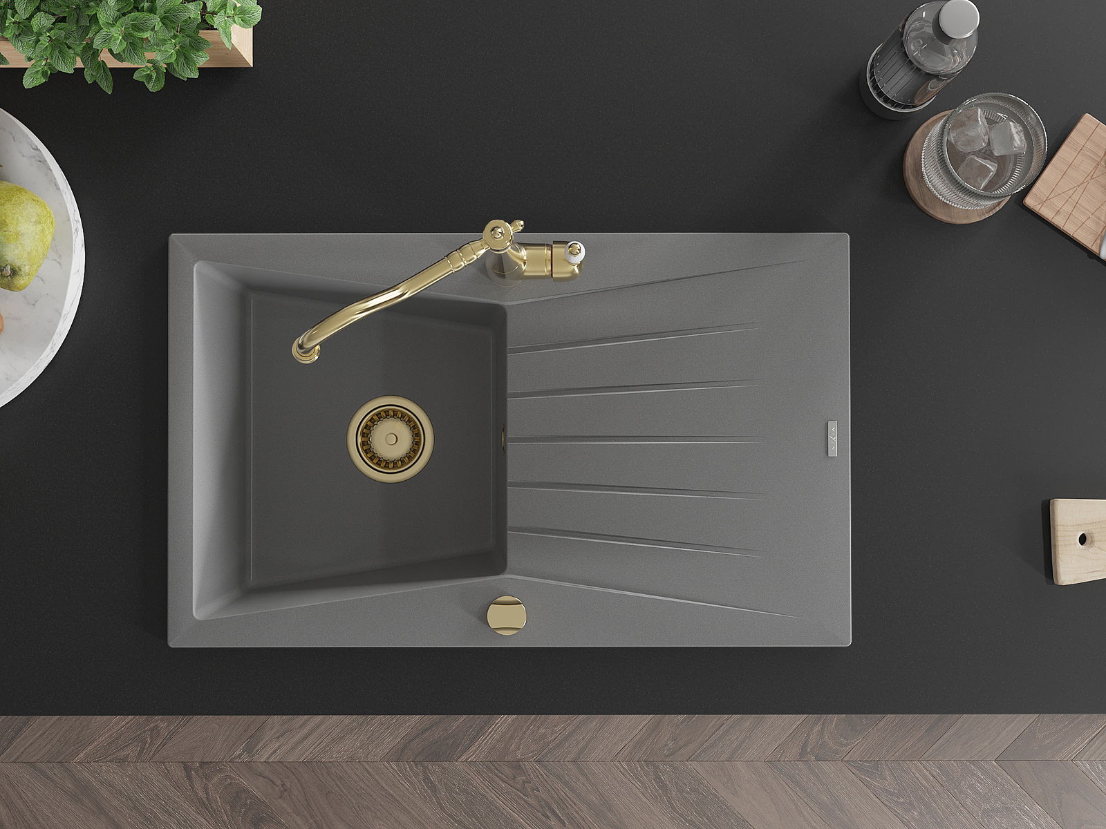 Mexen Cesar évier en granit 1 bac avec égouttoir et robinet de cuisine Carla, gris - 6514-71-670700-50