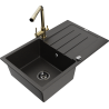 Mexen Bruno évier de cuisine en granit 1 bac avec égouttoir et robinet Duero, noir - 6513-77-671600-50-B