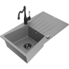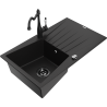 Mexen Cesar évier en granit à 1 bac avec égouttoir et robinet de cuisine Carla, noir/métallique argenté - 6514-73-670700-70-B