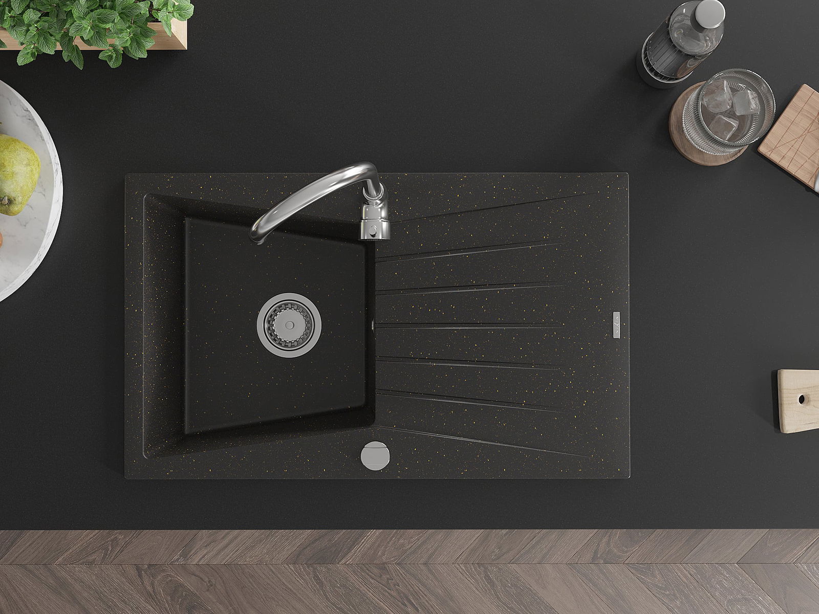 La surface de l'évier est très bien durcie, elle se distingue par une résistance exceptionnelle aux dommages mécaniques et aux rayures. Le matériau durable de fabrication permet de profiter de l'apparence de l'évier pendant de nombreuses années d'utilisation.