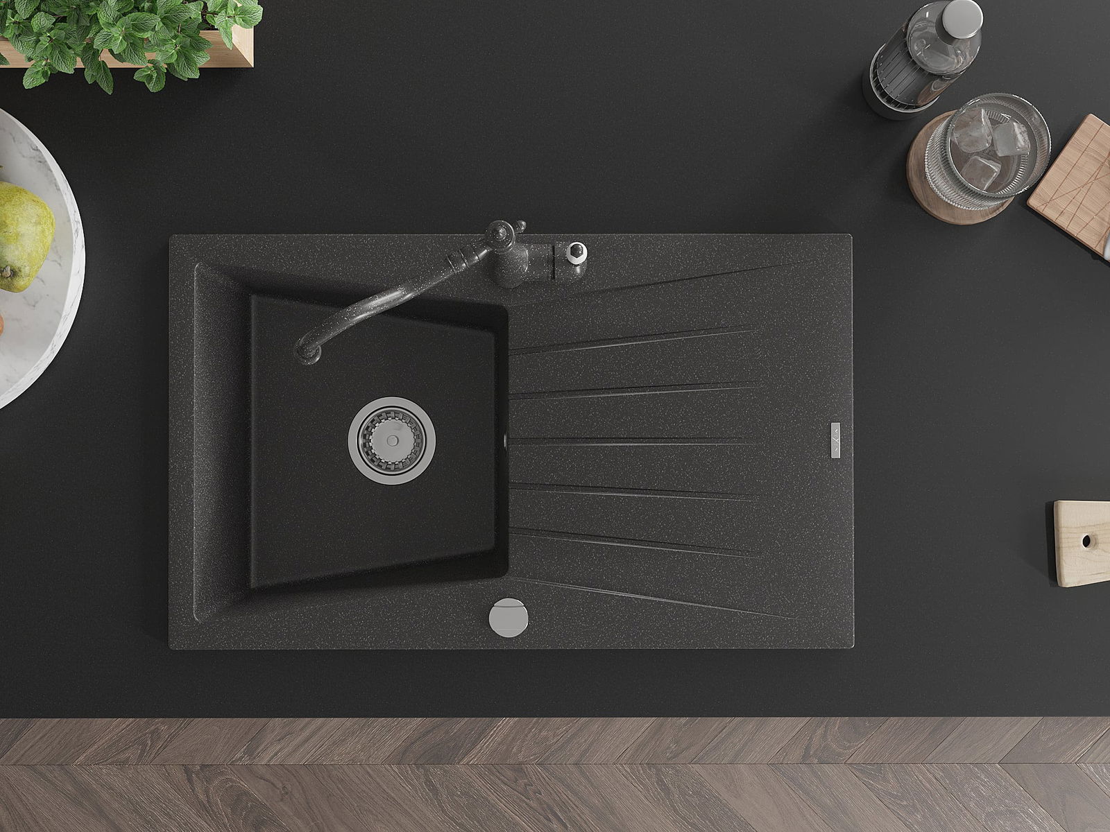 La surface de l'évier est très bien durcie, elle se distingue par une résistance exceptionnelle aux dommages mécaniques et aux rayures. Le matériau durable de fabrication permet de profiter de l'apparence de l'évier pendant de nombreuses années d'utilisation.