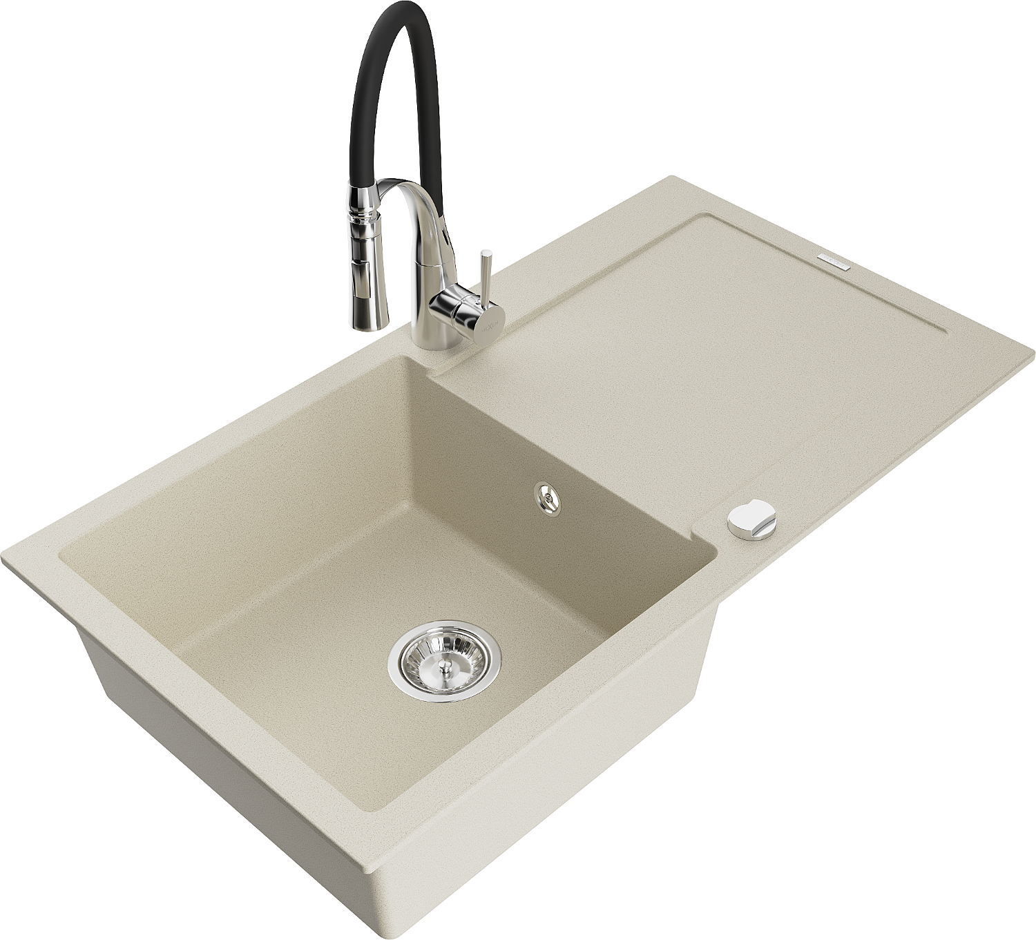 Mexen Leo évier en granit 1 bac avec égouttoir et robinet de cuisine Aster, beige - 6501-69-73450-07