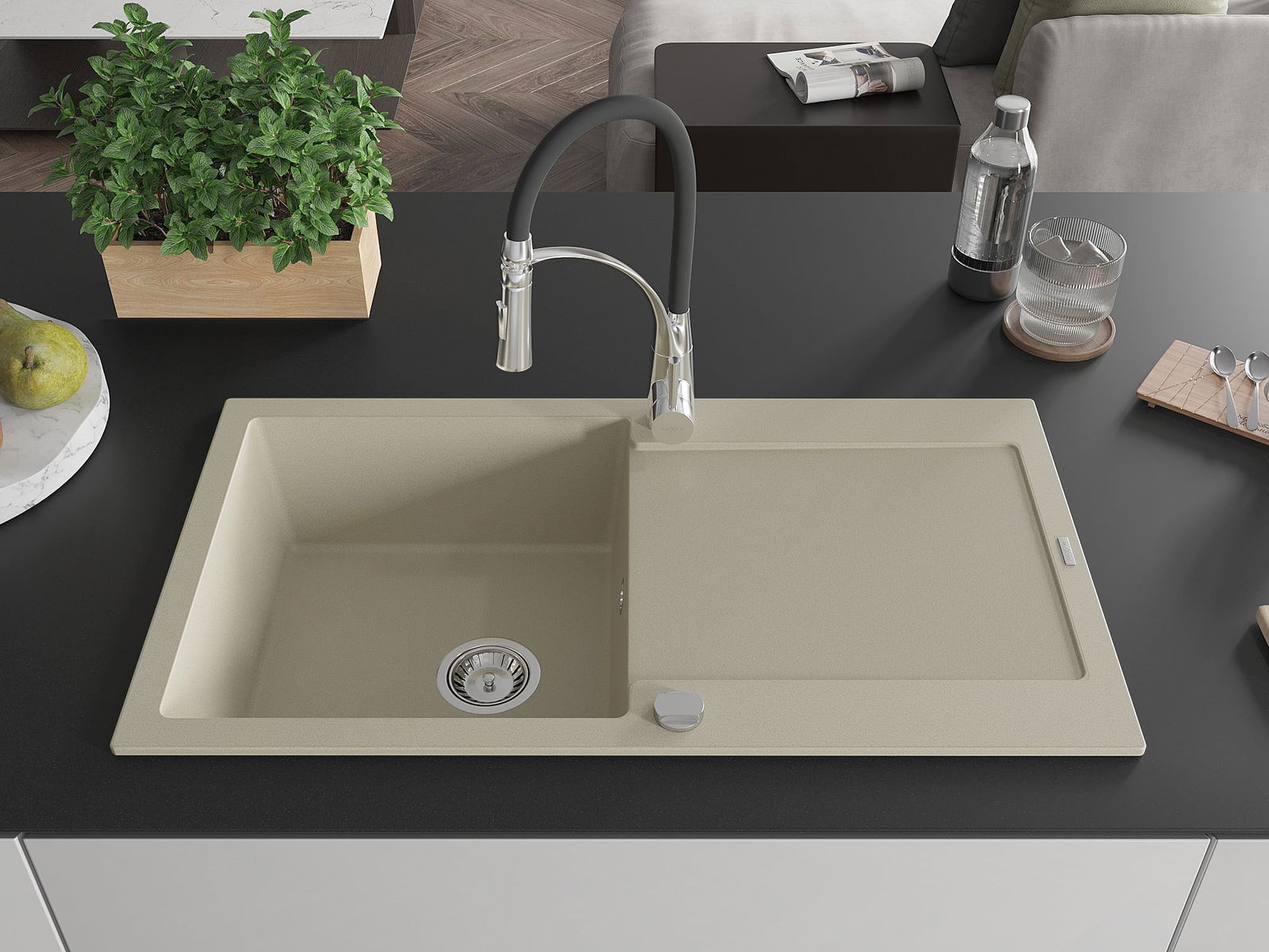L'évier a été fabriqué en granit de haute qualité. Il constitue un complément élégant et surtout pratique à toute cuisine, quel que soit son style. La haute qualité et la durabilité du granit garantissent une utilisation pendant de nombreuses années.