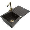 Mexen Cesar évier en granit 1 bac avec égouttoir et robinet de cuisine Duero, beige - 6514-69-671600-50