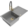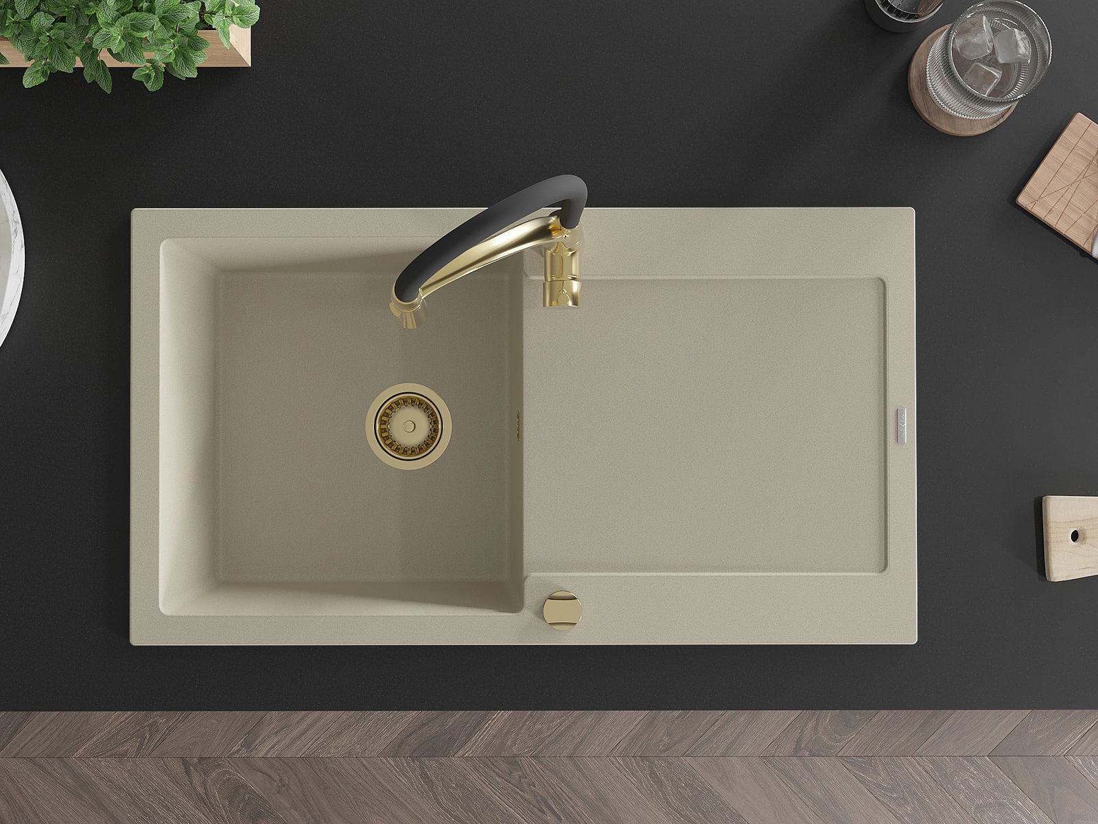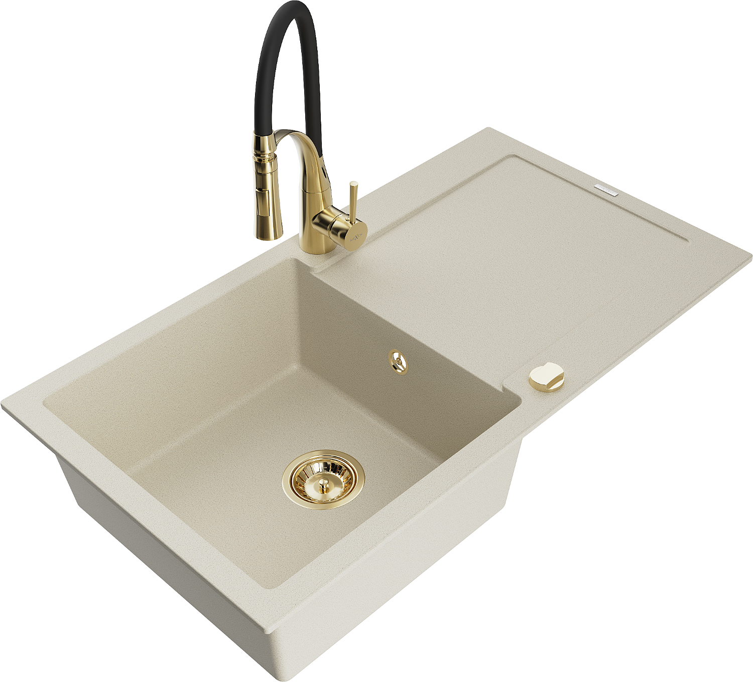 Mexen Leo évier en granit 1 bac avec égouttoir et robinet de cuisine Aster, beige - 6501-69-73450-57-G