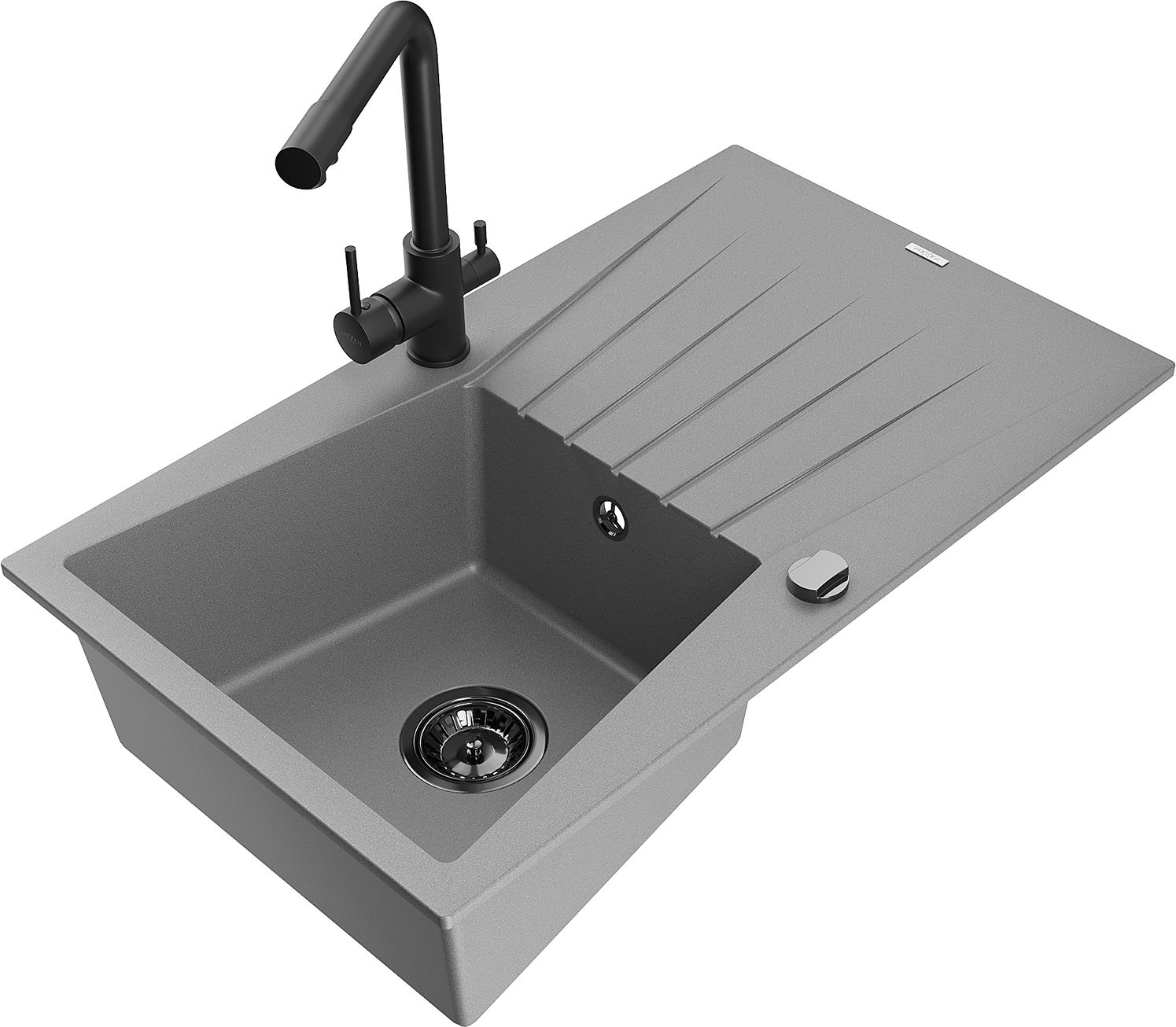 Mexen Cesar évier en granit à 1 bac avec égouttoir et robinet de cuisine Duero, gris - 6514-71-671600-70-B