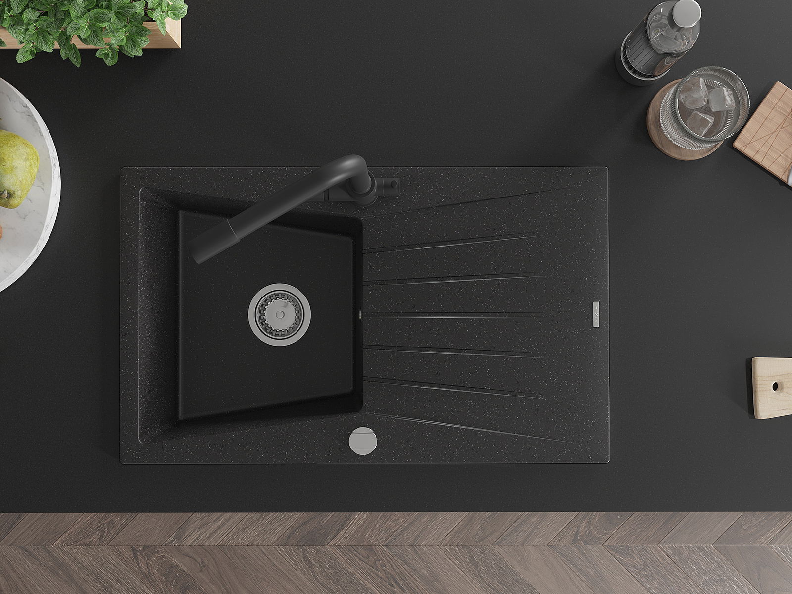 La surface de l'évier est très bien durcie, elle se distingue par une résistance exceptionnelle aux dommages mécaniques et aux rayures. Le matériau durable de fabrication permet de profiter de l'apparence de l'évier pendant de nombreuses années d'utilisation.