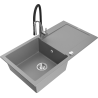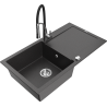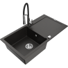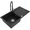 Mexen Leo évier en granit 1 bac avec égouttoir et robinet de cuisine Aster, noir/métallisé argenté - 6501-73-73450-07