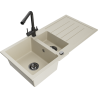 Mexen Andres évier en granit 1,5 bac avec égouttoir et robinet de cuisine Duero, blanc - 6515-20-671600-70