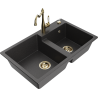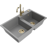 Mexen Tomas évier granitique à 2 bacs avec robinet de cuisine Carla, beige - 6516-69-670700-50