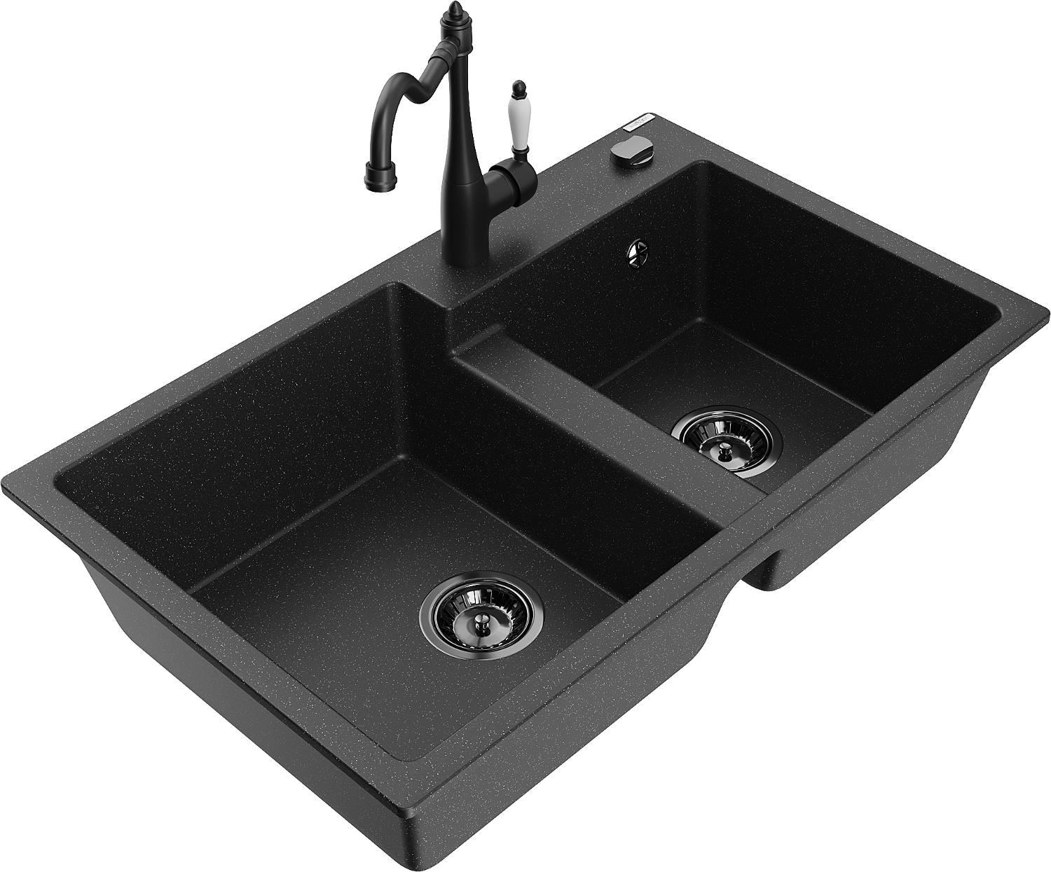 Mexen Tomas évier en granit 2 bacs avec robinet de cuisine Carla, noir/métallique argenté - 6516-73-670700-70-B