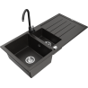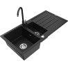 Mexen Andres évier en granit 1,5 bac avec égouttoir et mitigeur de cuisine Telma, noir moucheté - 6515-76-670200-70