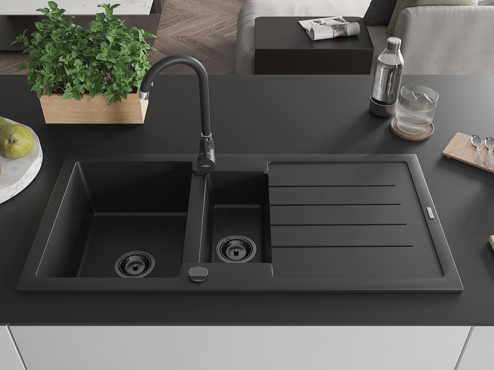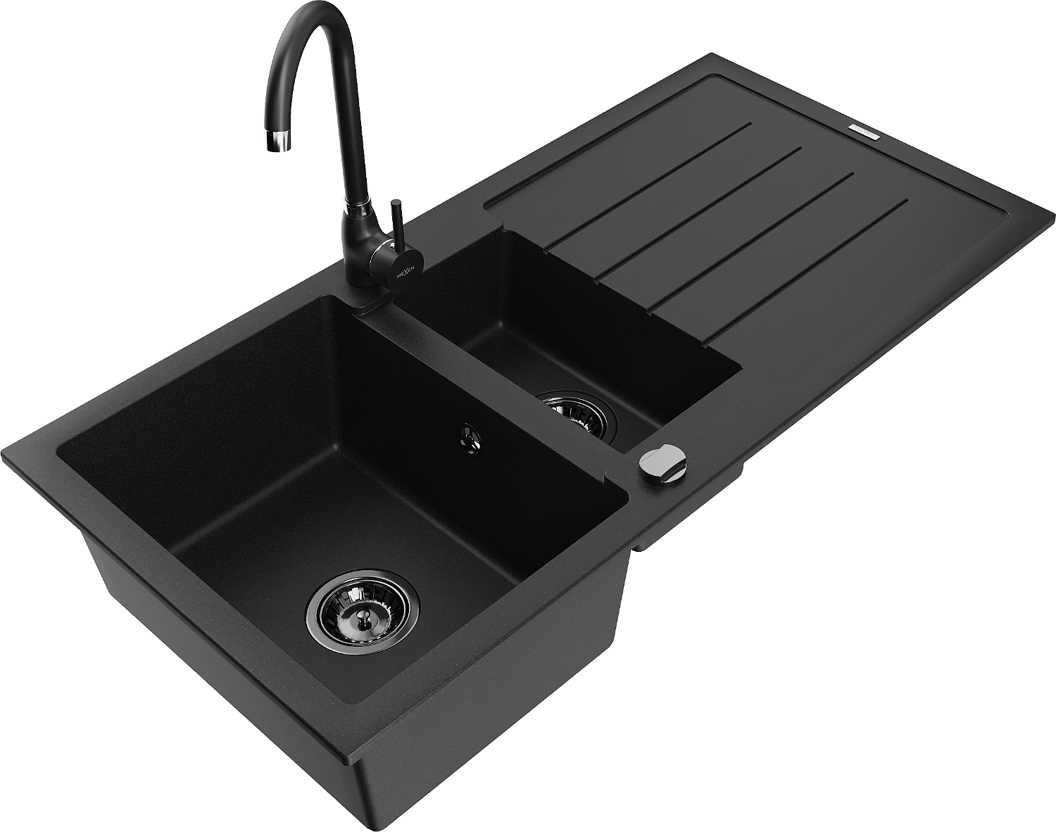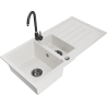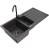 Mexen Andres évier en granit 1,5 bac avec égouttoir et mitigeur de cuisine Telma, noir - 6515-77-670200-70-B