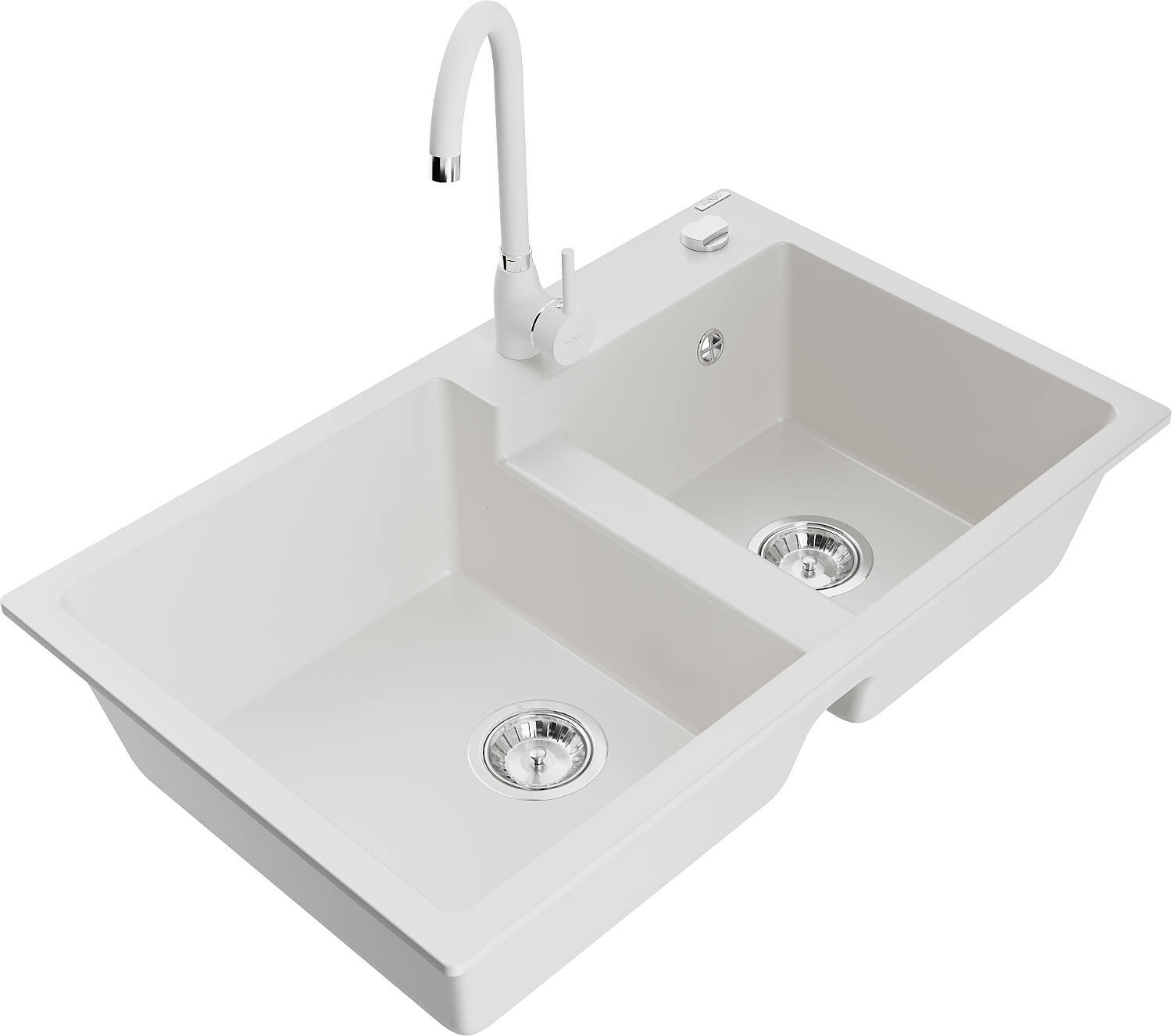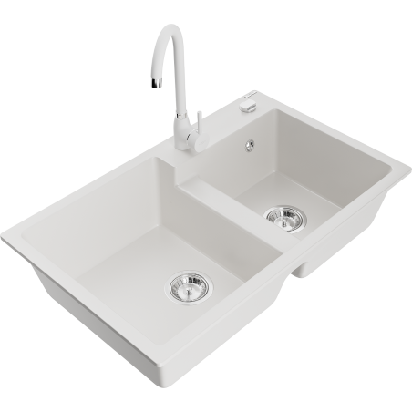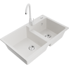 Mexen Tomas évier en granit à 2 bacs avec robinet de cuisine Telma, blanc - 6516-20-670200-20