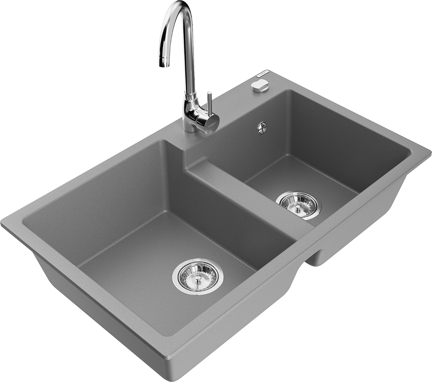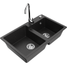 Mexen Tomas évier de cuisine en granit 2 bacs avec robinet Telma, gris - 6516-71-670200-00
