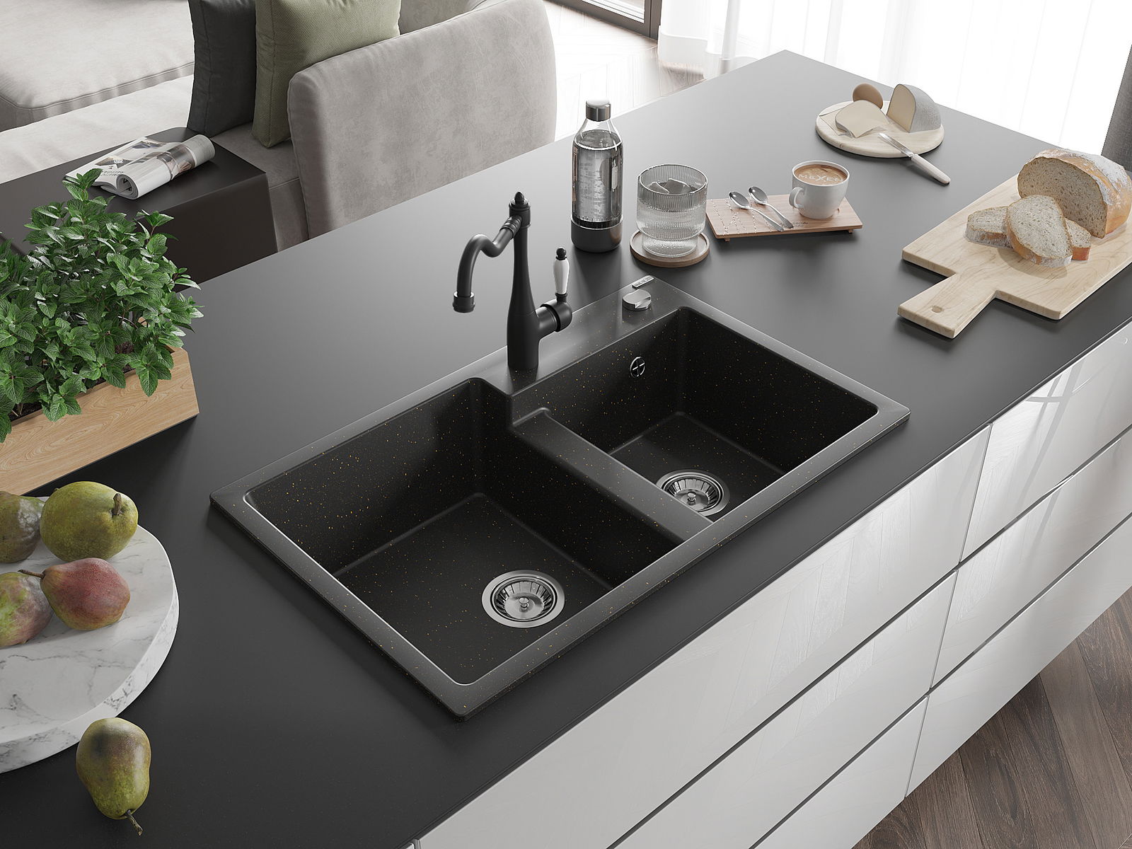 La surface de l'évier est très bien durcie, elle se distingue par une résistance exceptionnelle aux dommages mécaniques et aux rayures. Le matériau durable de fabrication permet de profiter de l'apparence de l'évier pendant de nombreuses années d'utilisation.