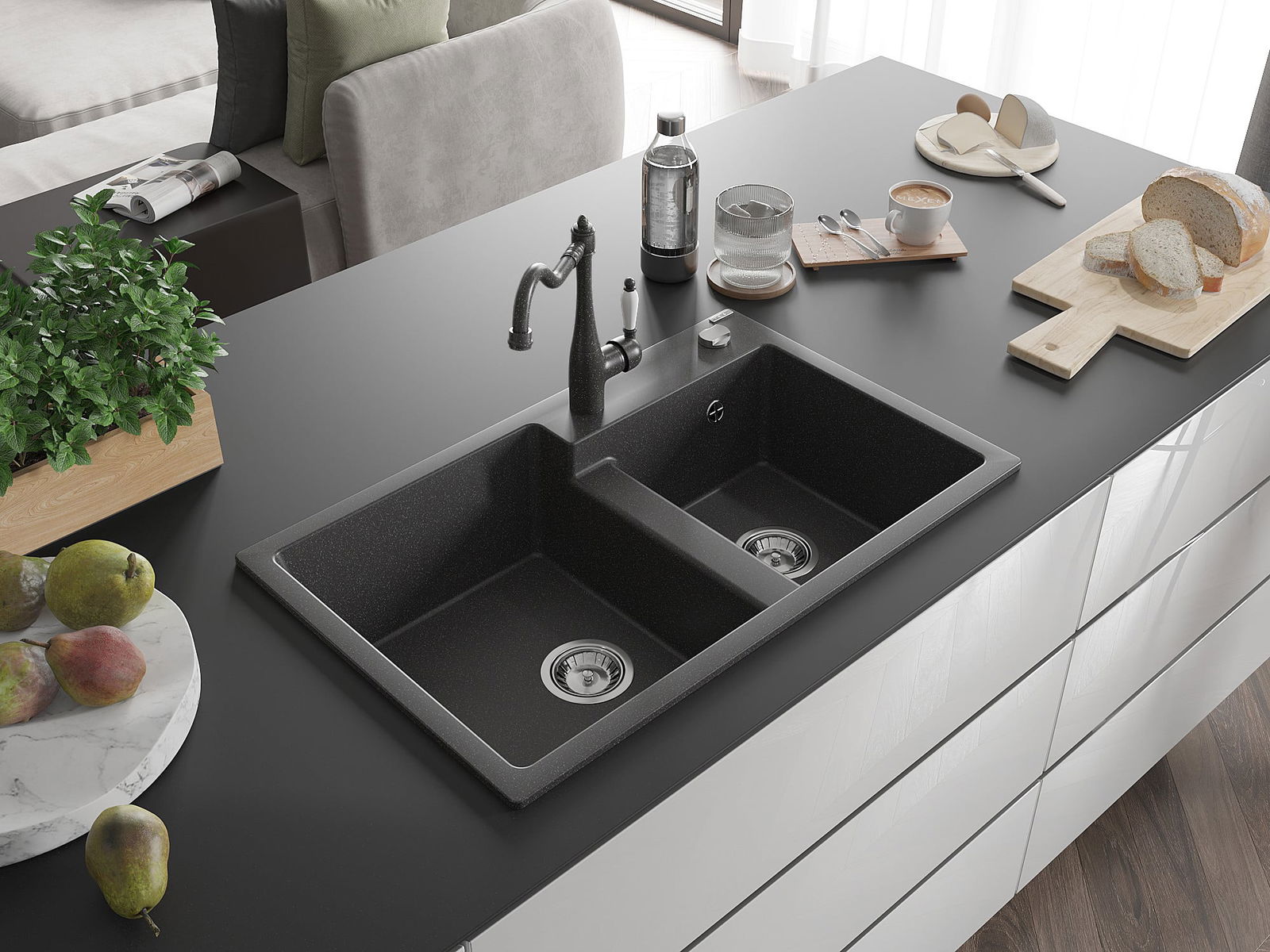 L'évier a été fabriqué en granit de haute qualité. Il constitue un complément élégant et surtout pratique à toute cuisine, quel que soit son style. La haute qualité et la durabilité du granit garantissent une utilisation pendant de nombreuses années.