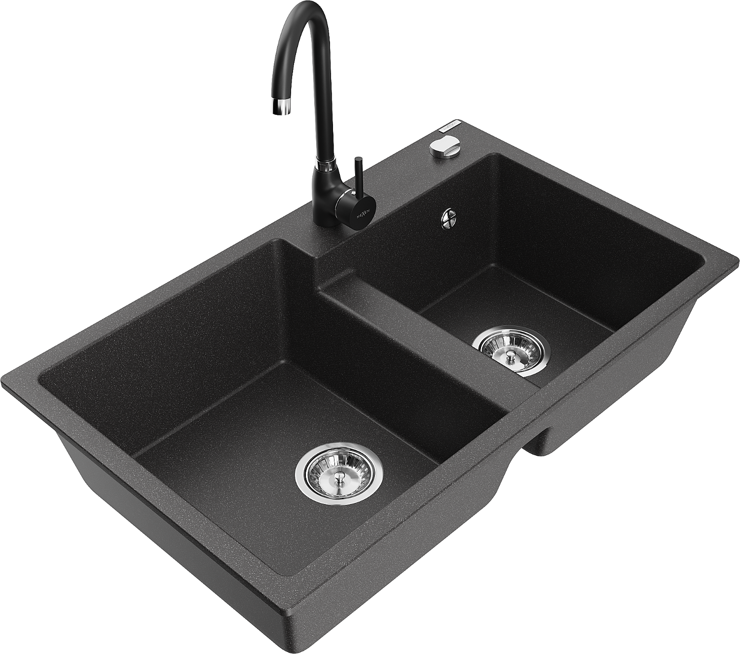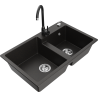Mexen Tomas évier de cuisine en granit à 2 bacs avec mitigeur Telma, noir moucheté - 6516-76-670200-70
