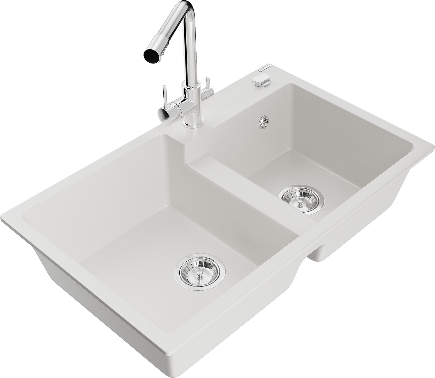 Mexen Tomas évier en granit à 2 bacs avec robinet de cuisine Duero, blanc - 6516-20-671600-00