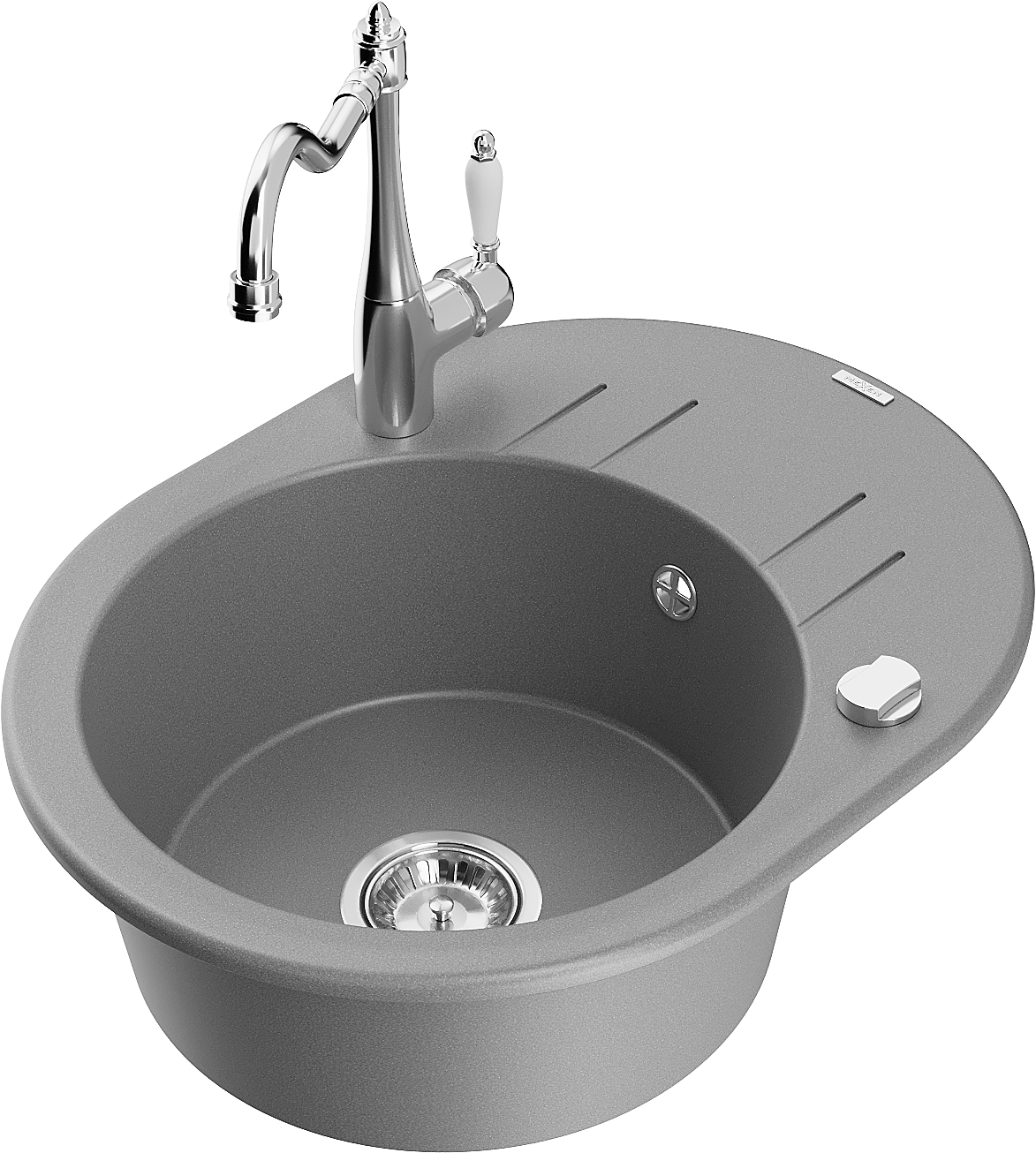 Mexen Kevin évier en granit à 1 bac avec égouttoir et robinet de cuisine Carla, gris - 6517-71-670700-00