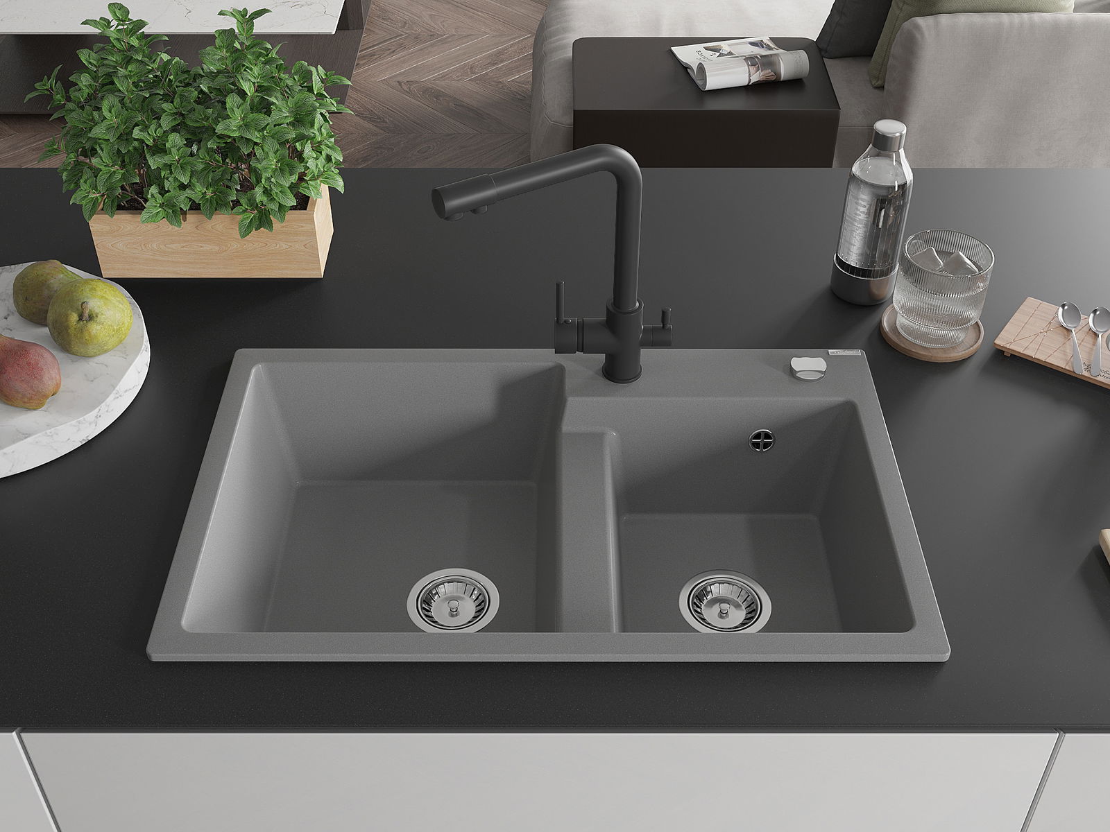 La surface de l'évier est très bien durcie, elle se distingue par une résistance exceptionnelle aux dommages mécaniques et aux rayures. Le matériau durable de fabrication permet de profiter de l'apparence de l'évier pendant de nombreuses années d'utilisation.