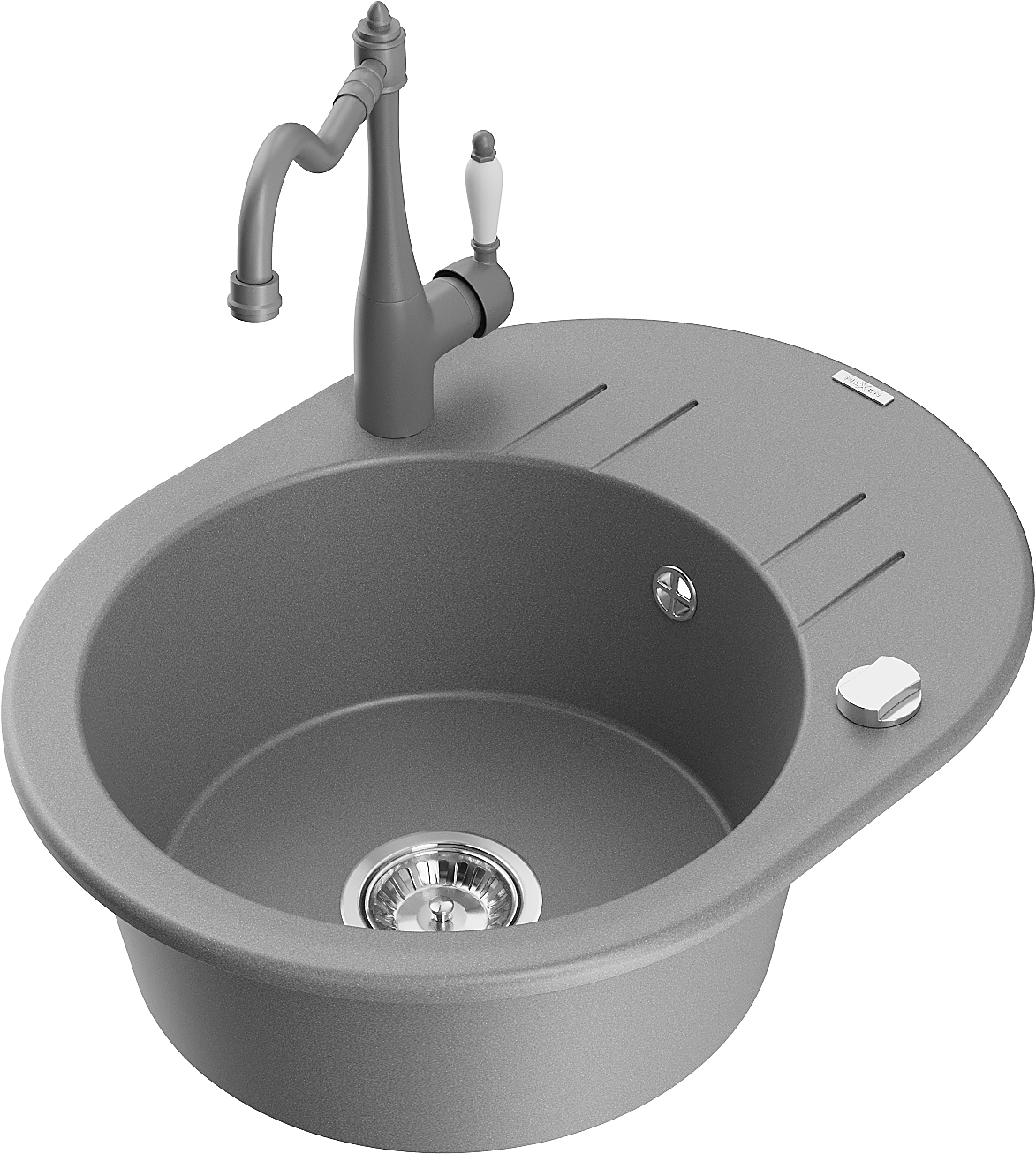 Mexen Kevin évier en granit 1 bac avec égouttoir et robinet de cuisine Carla, gris - 6517-71-670700-71