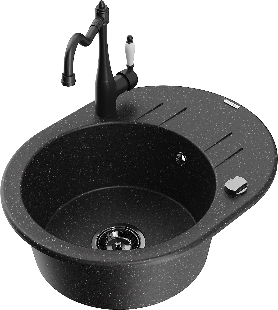 Mexen Kevin évier en granit 1 cuve avec égouttoir et robinet de cuisine Carla, noir/métallique argent - 6517-73-670700-70-B