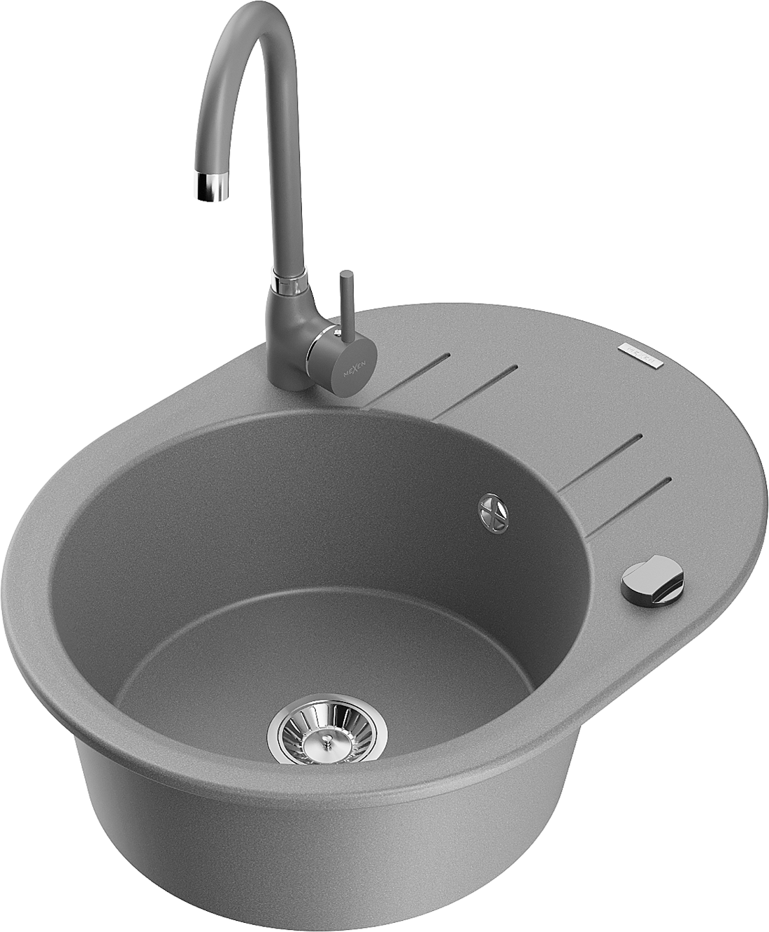 Mexen Kevin évier en granit 1 bac avec égouttoir et robinet de cuisine Telma, gris - 6517-71-670200-71