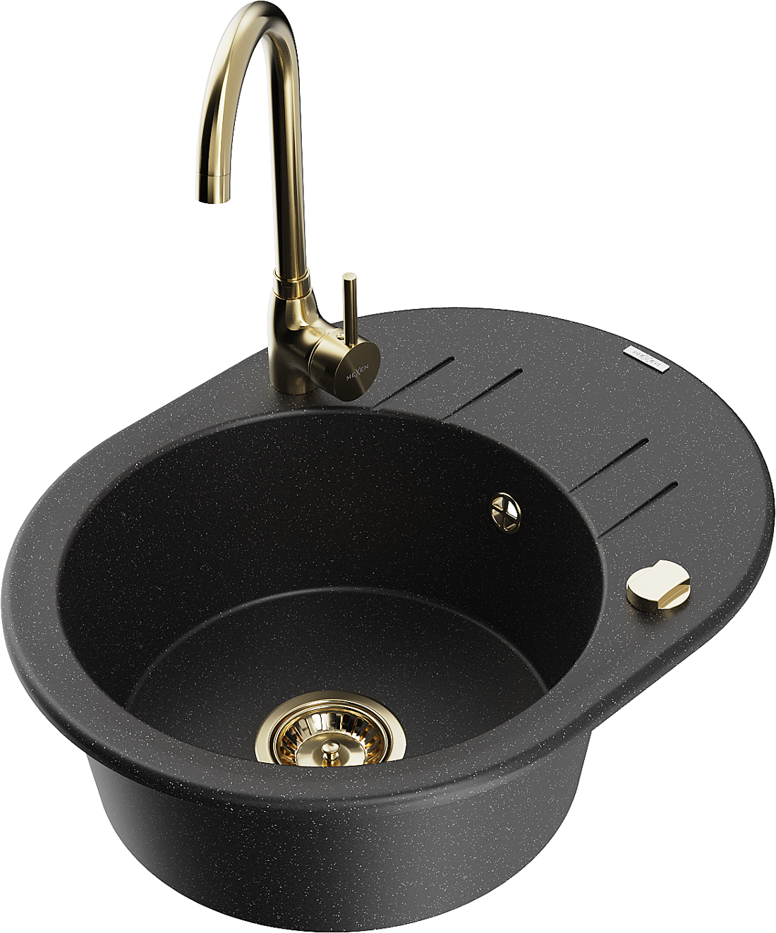 Mexen Kevin évier en granit à 1 bac avec égouttoir et robinet de cuisine Telma, noir/argent métallisé - 6517-73-670200-50