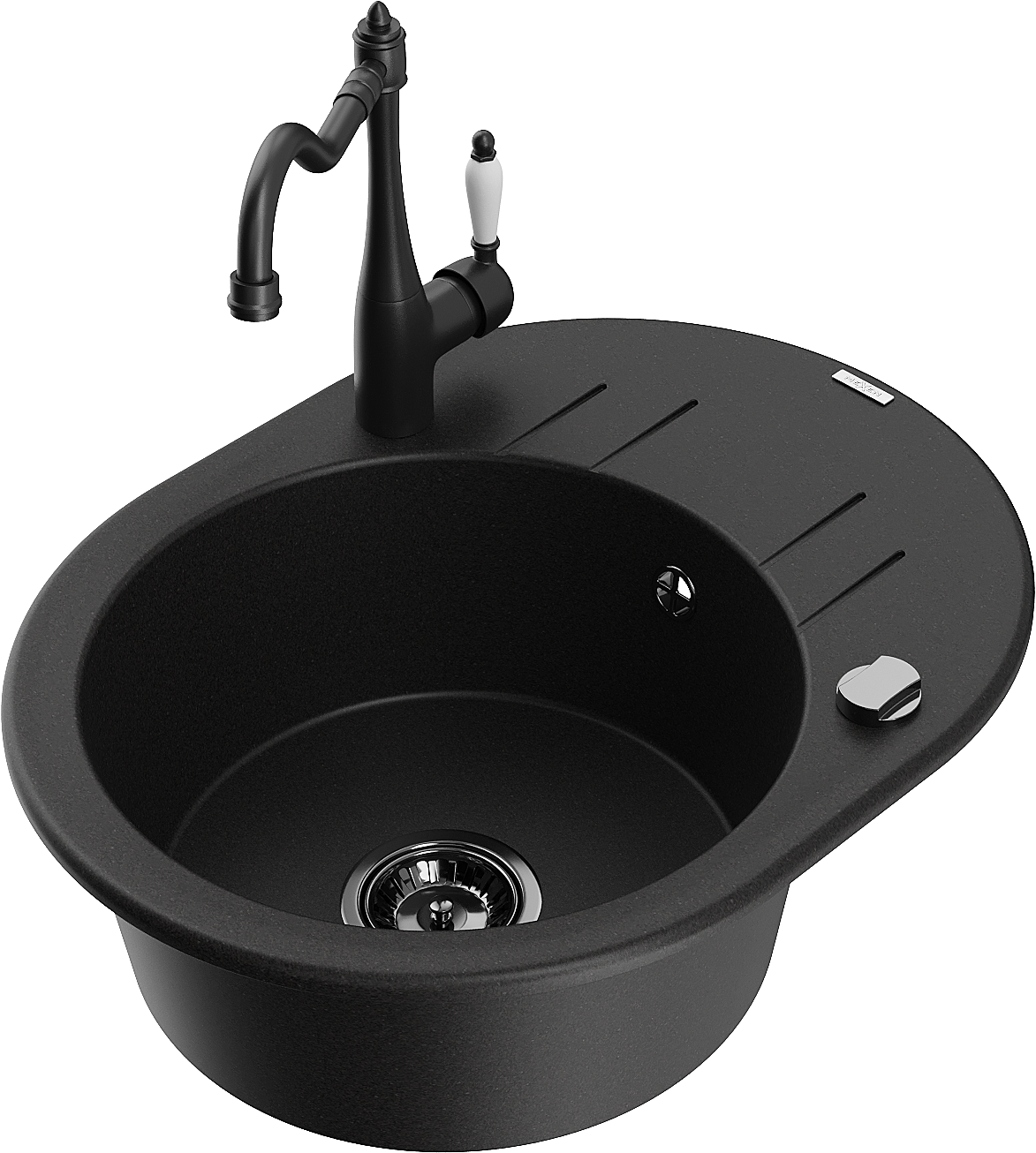 Mexen Kevin évier en granit 1 bac avec égouttoir et robinet de cuisine Carla, noir - 6517-77-670700-70-B