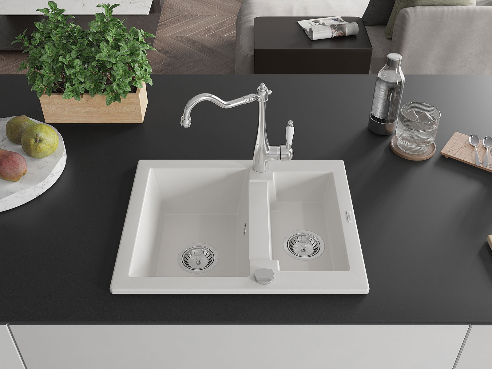 La surface de l'évier est très bien durcie, elle se distingue par une résistance exceptionnelle aux dommages mécaniques et aux rayures. Le matériau durable de fabrication permet de profiter de l'apparence de l'évier pendant de nombreuses années d'utilisation.