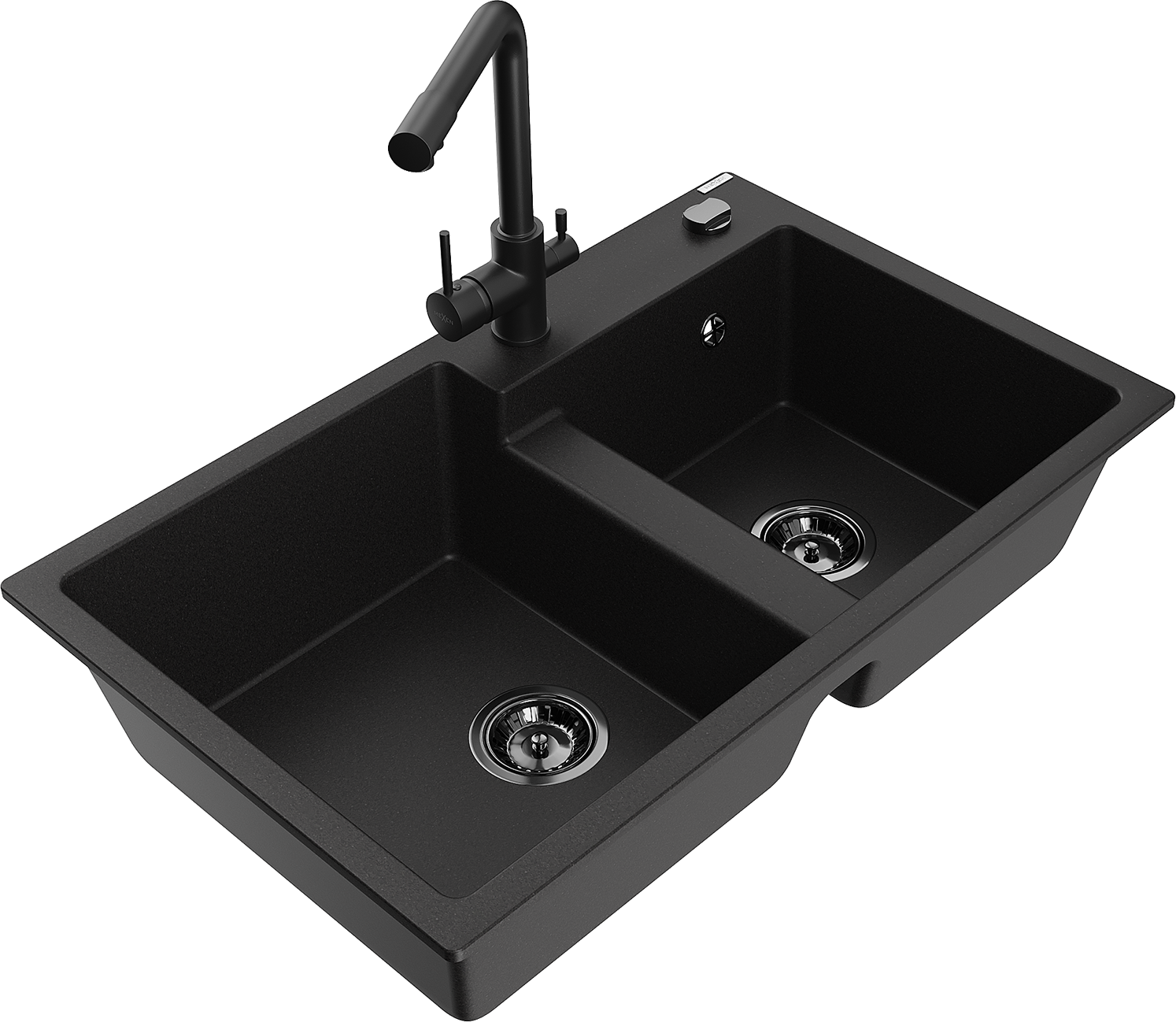 Mexen Tomas évier en granit à 2 bacs avec robinet de cuisine Duero, noir - 6516-77-671600-70-B